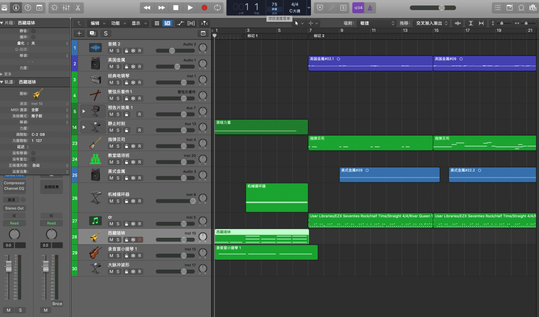 Logic背后是apple公司开发运营。cubase是由斯坦伯格公司开发运营,后由yamaha公司收购。也就是说两者分别是美系和日德系的巨头产品,后面又有大公司作背书,实力不容小觑。 从设计逻辑上来分析,Logic. Pro总结起来就两个字:方便。cubasepro的逻辑性强。咱们在平时使用中就能明显感觉出来。举个例子:从咱们购买的过程中就能发现,logic在applestore中直接交钱下载安装,软件中有特别多的预设、原厂音源与效果器。整个操作过程特别方便。软件里自带包括多种风格的真实鼓手乐段,风格多样,电子、嘻哈、流行、拉丁打击、节奏布鲁斯等。而且鼓手自动乐段加外还有他的智能之处,比如:在过门处有智能过门(fill in)。对配器还不是很熟悉的同学十分友好。在logic中还有独家设计的flex time功能(简化了音频片段中音符、节拍和其他事件的时序编辑流程。您可以在音频片段的指定事件之间进行时间压缩或扩展,无需修剪、移动、挪动或交叉渐变。-出自苹果官网),时刻体现方便。然而,在cubase中还要在实体店中购买一个电子狗一样的东西,去注册安装,一步一步规范安装,十分体现逻辑。虽然说logic pro的方便性更胜一筹。但是,如果cubase使用习惯之后,因为其整体逻辑是极其严密的,也是相当便捷的,这个大家完全不用担心。 logic界面 2. 稳定性稳定性在音乐制作中特别重要。你想啊,当你正在才思泉涌的编曲制作,突然就崩了!白做了!!不在了!!!,这是件非常让人头条的事。就如《让子弹飞》中师爷所说:你吃着火锅唱着歌,突然就被马匪劫了。 两者DAW的最新正版(cubase10.5与logic10.5.0)在稳定性上一点问题都没有,那么问题是什么呢?问题的原因是这样,苹果电脑和mac系统的稳定性比pc机更加好一些。如果您想到的是把pc装黑苹果的话,能不能解决此问题呢?我在好多次试验中,就是因为PC系统不稳定导致的崩溃。3. 钢琴卷帘窗