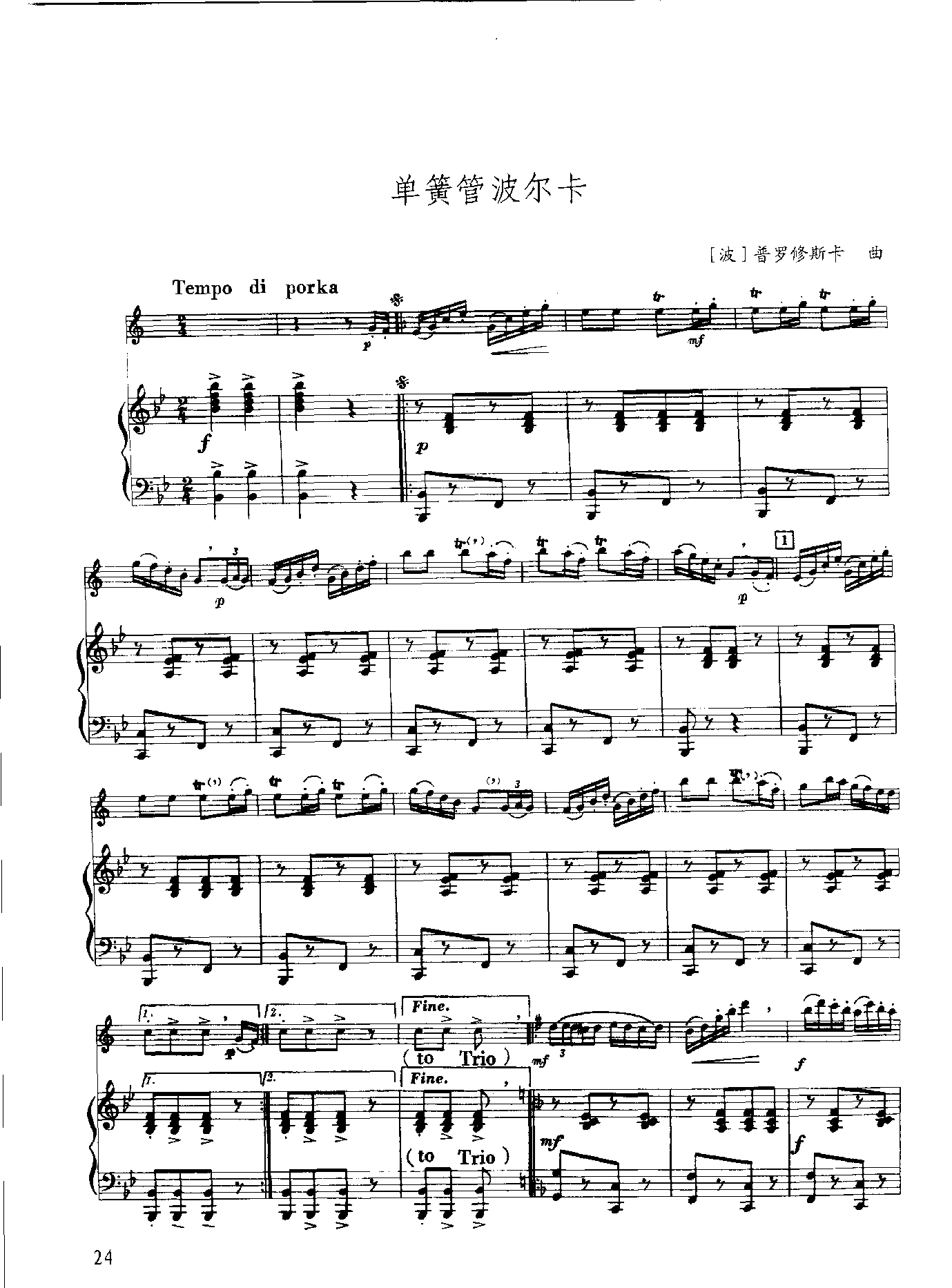 中外单簧管教学曲谱:单簧管波尔卡(附钢琴伴奏谱)[波]普罗修斯卡曲