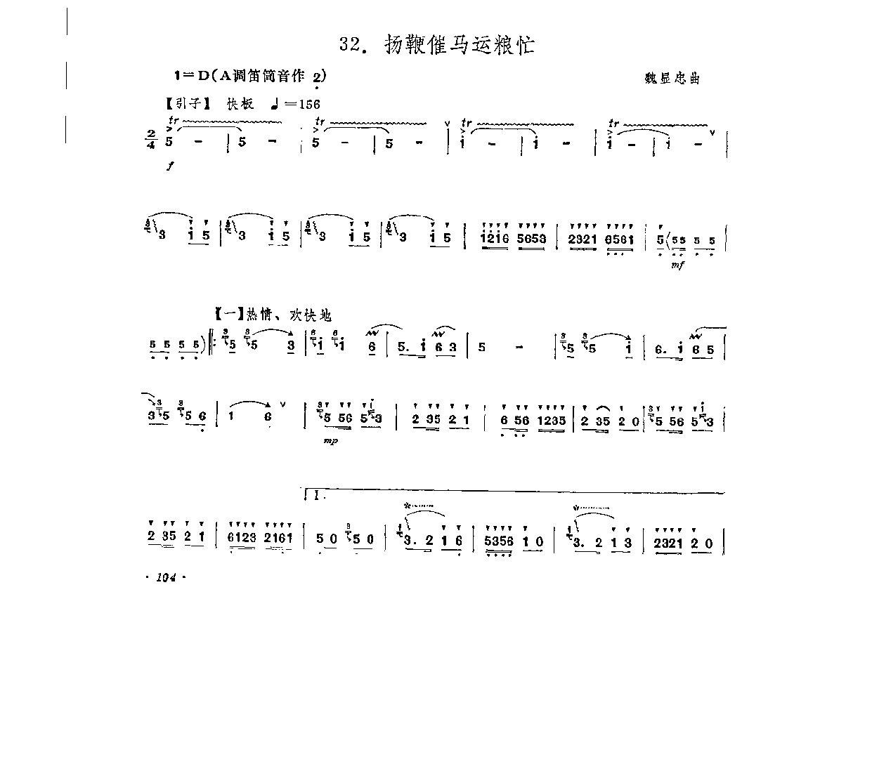 笛子独奏曲简谱:扬鞭催马运粮忙 魏显忠曲高清电子版乐谱歌词图片是器乐学习网于2025年02月20日 17:12:53更新分享的笛子曲谱;资源收录于笛子曲谱栏目中;器乐学习网免费分享笛子独奏曲简谱:扬鞭催马运粮忙 魏显忠曲简谱与五线谱歌谱图片,欢迎在线免费下载;器乐学习网无需注册会员,直接免费下载各类乐器学习资源及乐谱。