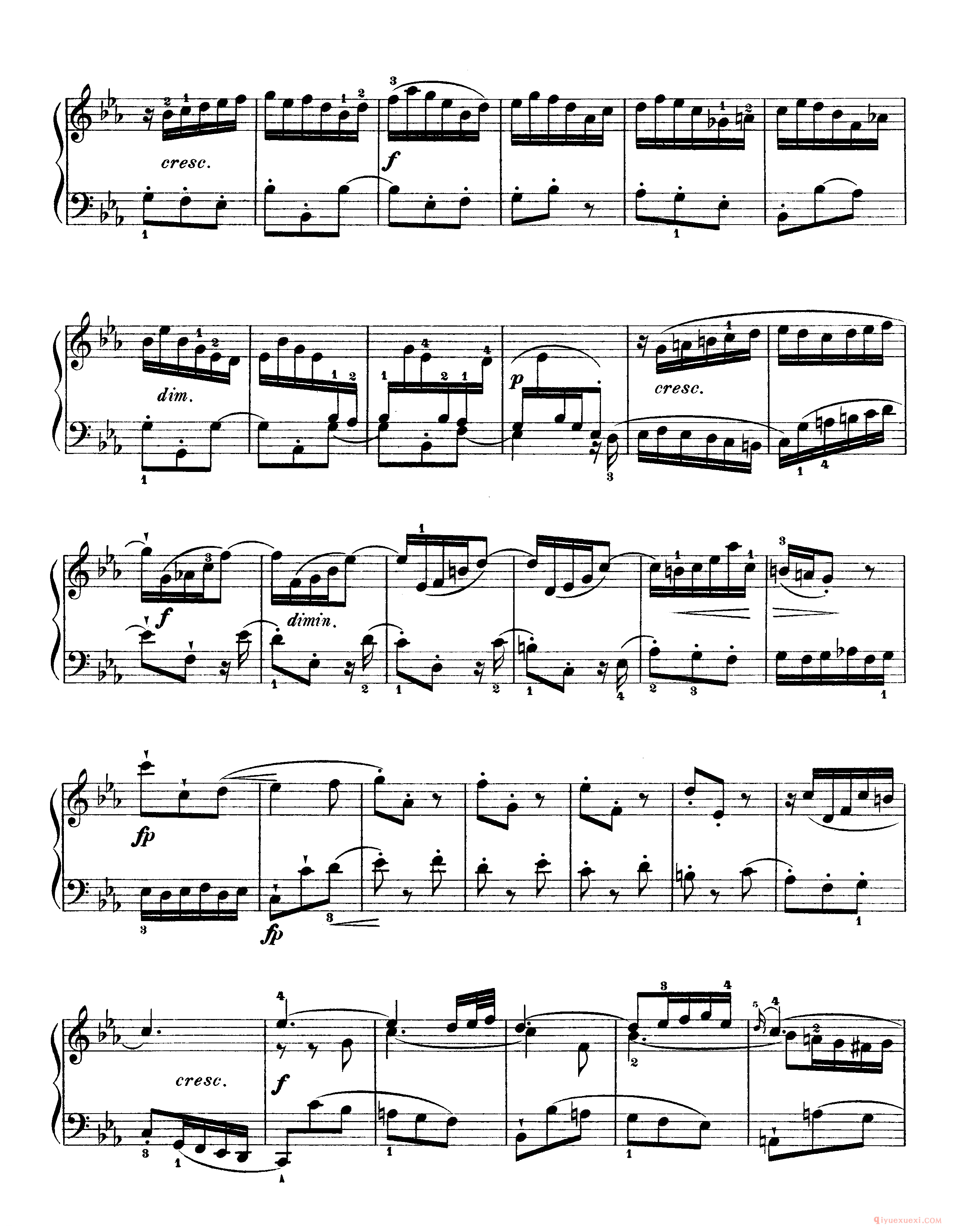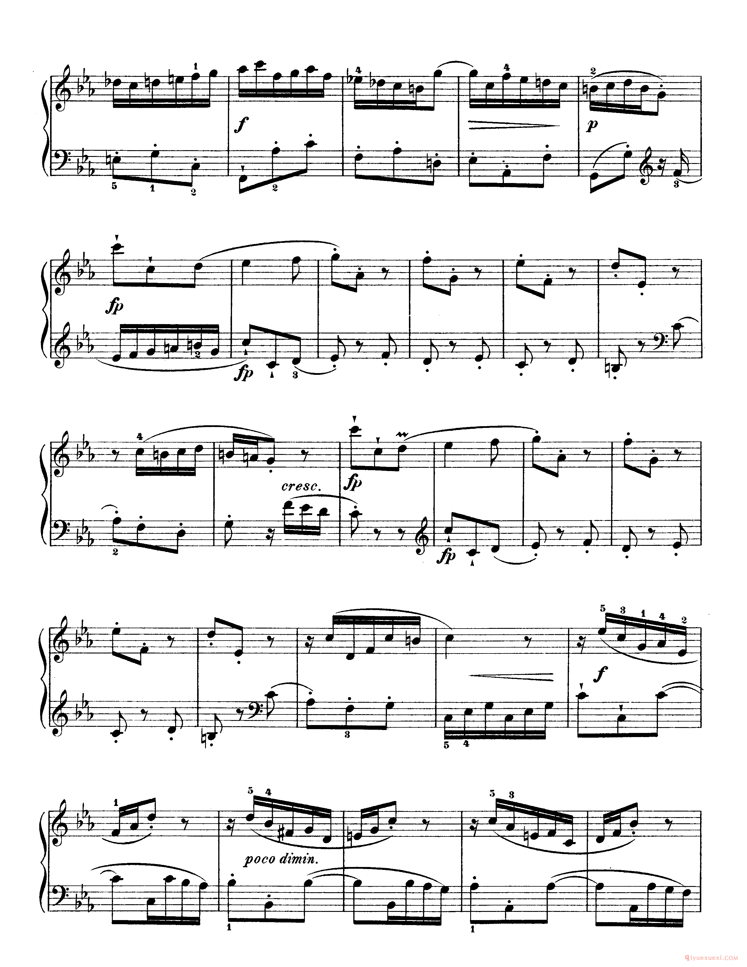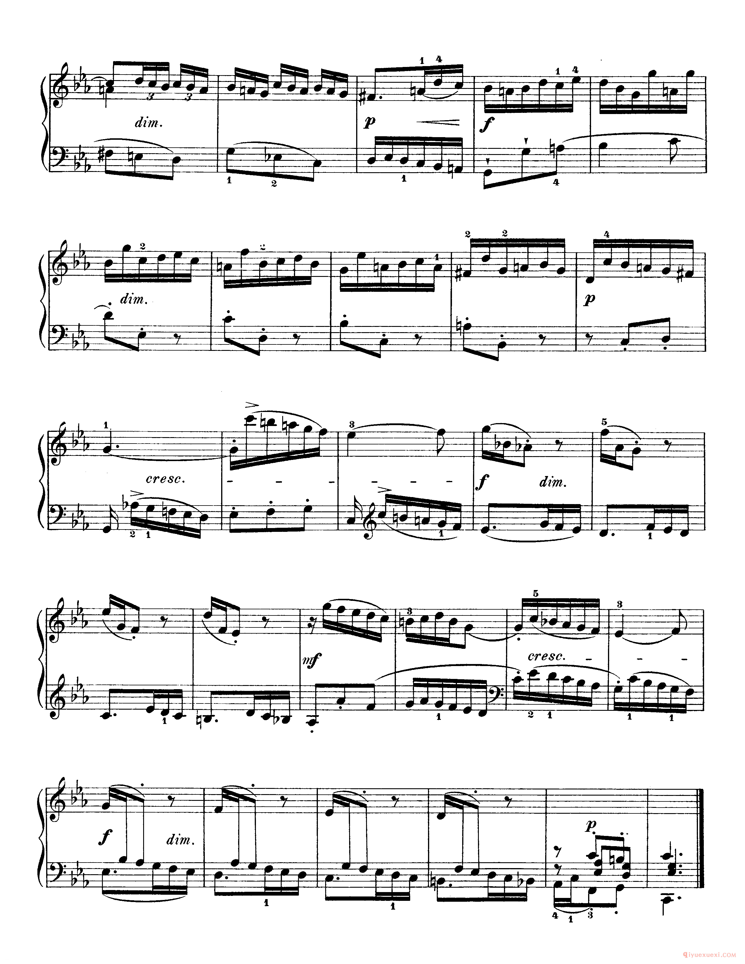 技巧: 1.这首作品和前面第八条的训练内容是一样的,都是音阶型的跑动练习,所不同的是这条练习曲以左手训练为主,左手需要注意的技巧要点和右手一样,仍然是换指动作的准确性。(具...