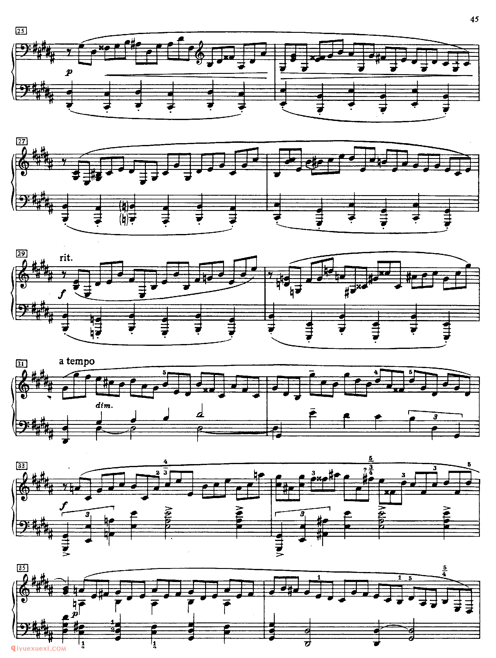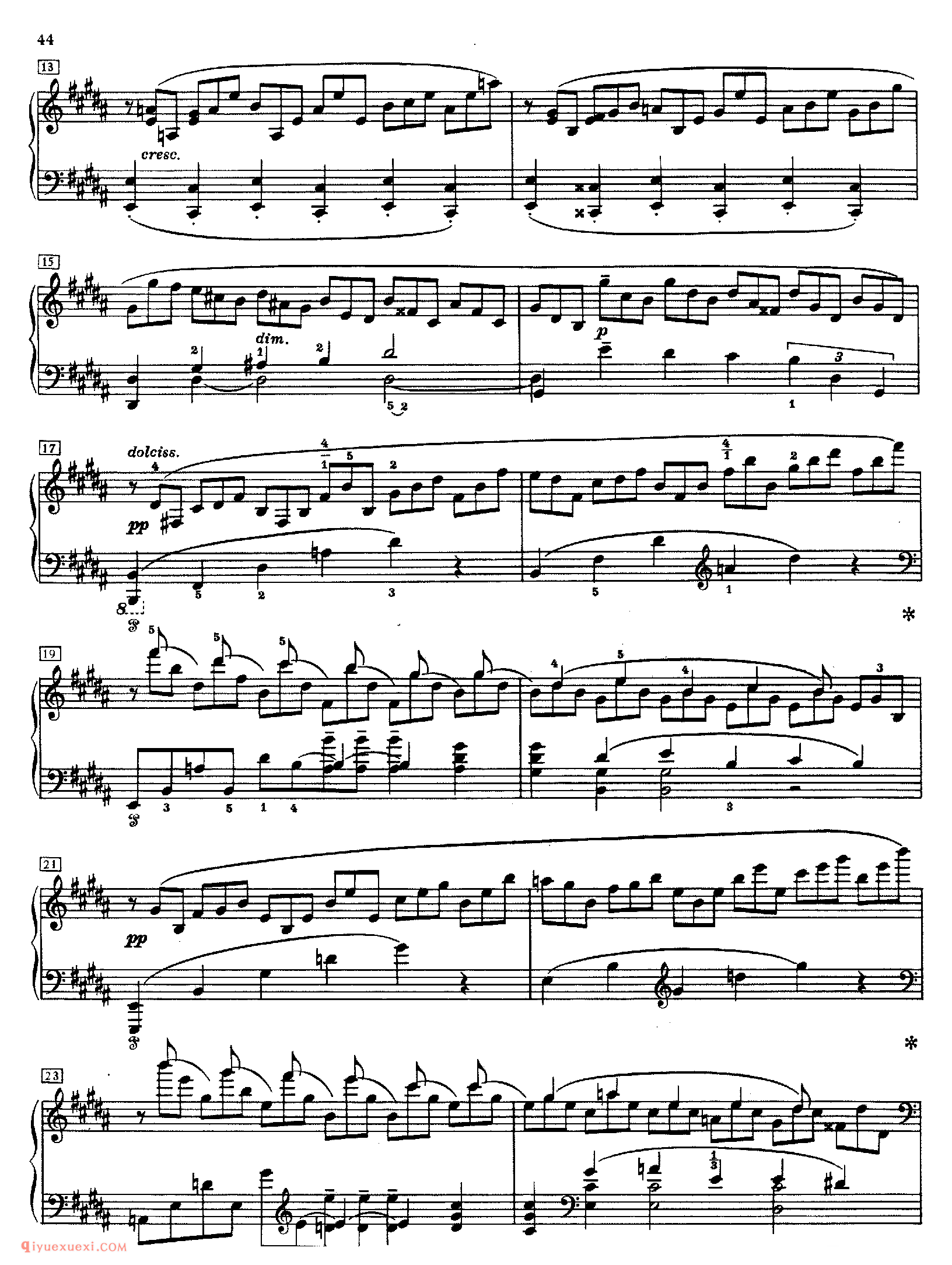 这首乐曲的左手弹奏时,小指既要站稳、保持,大指和三指又可略带轻微地带动手掌的翻动动作, 值得注意的是,19世纪的装饰音往往是在强拍之前弹奏的。因此第11小节的装饰音可从前一小节...