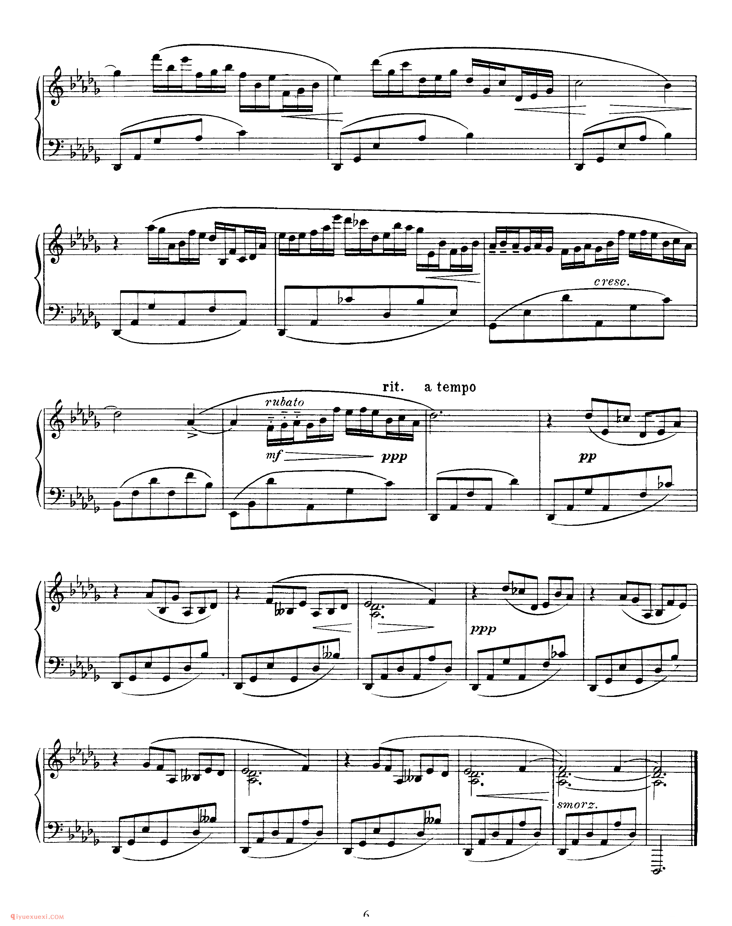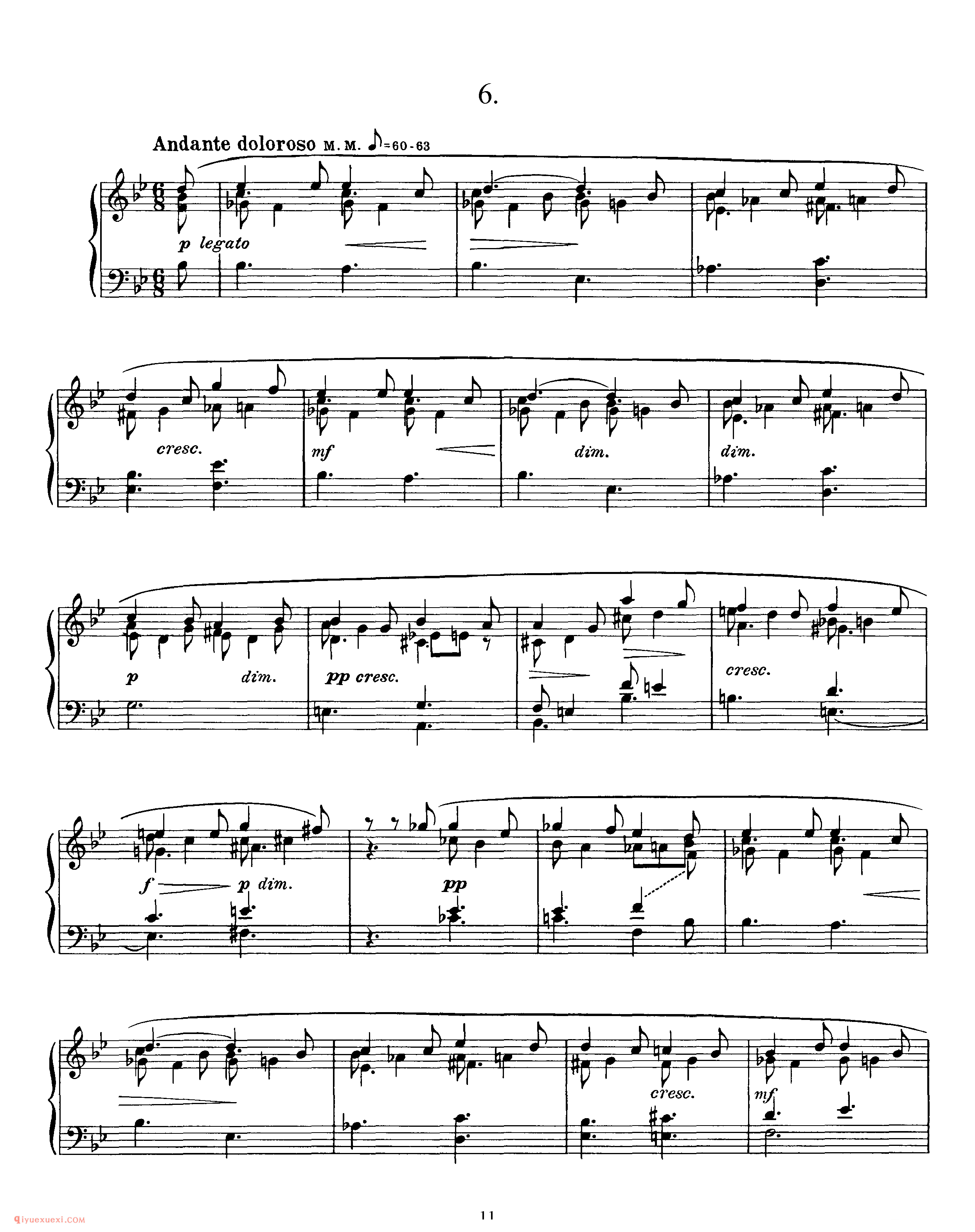 6. 降B大调,6/8拍,悲痛的行板。温柔而连贯的,是相对缺少个性的一首前奏曲。