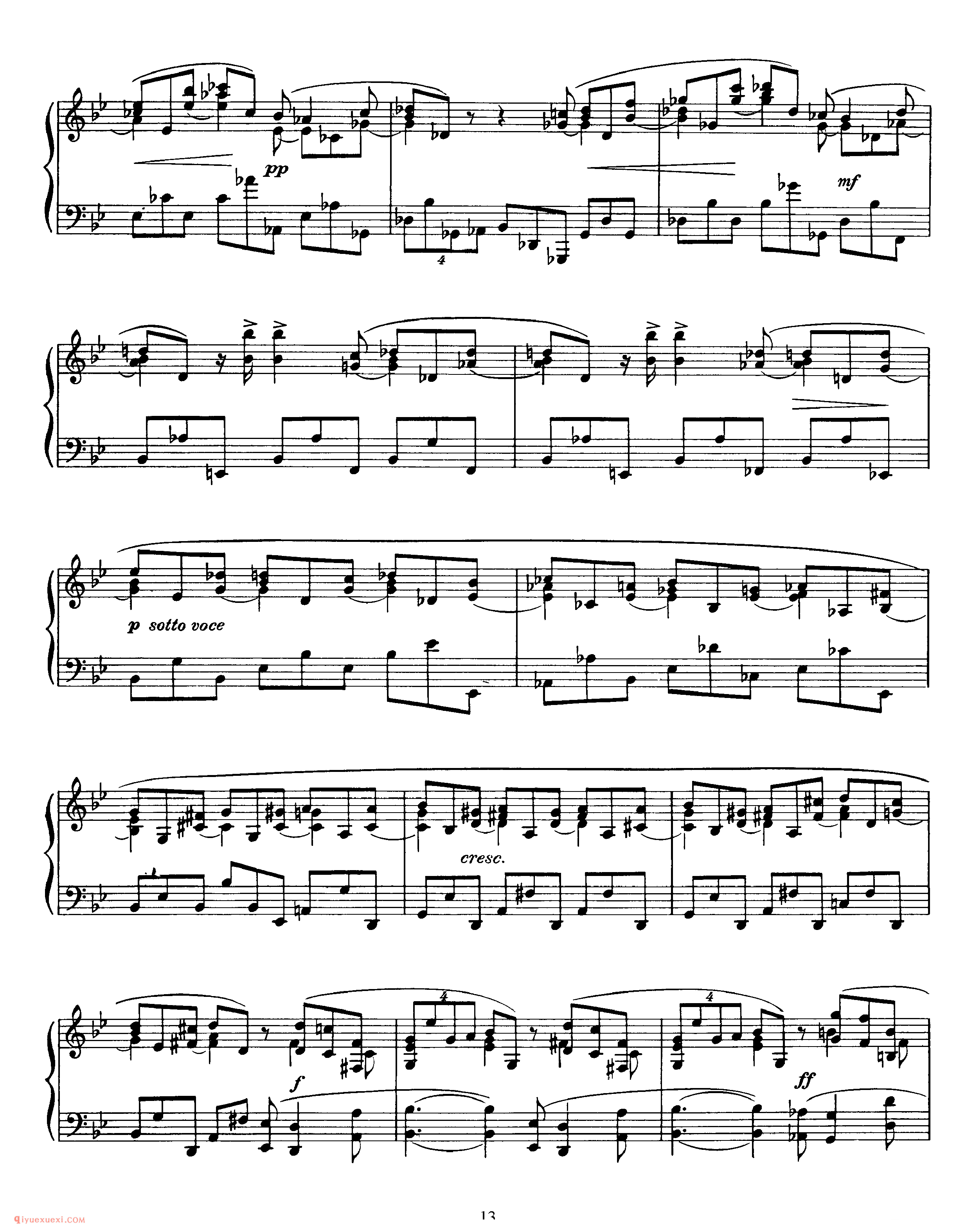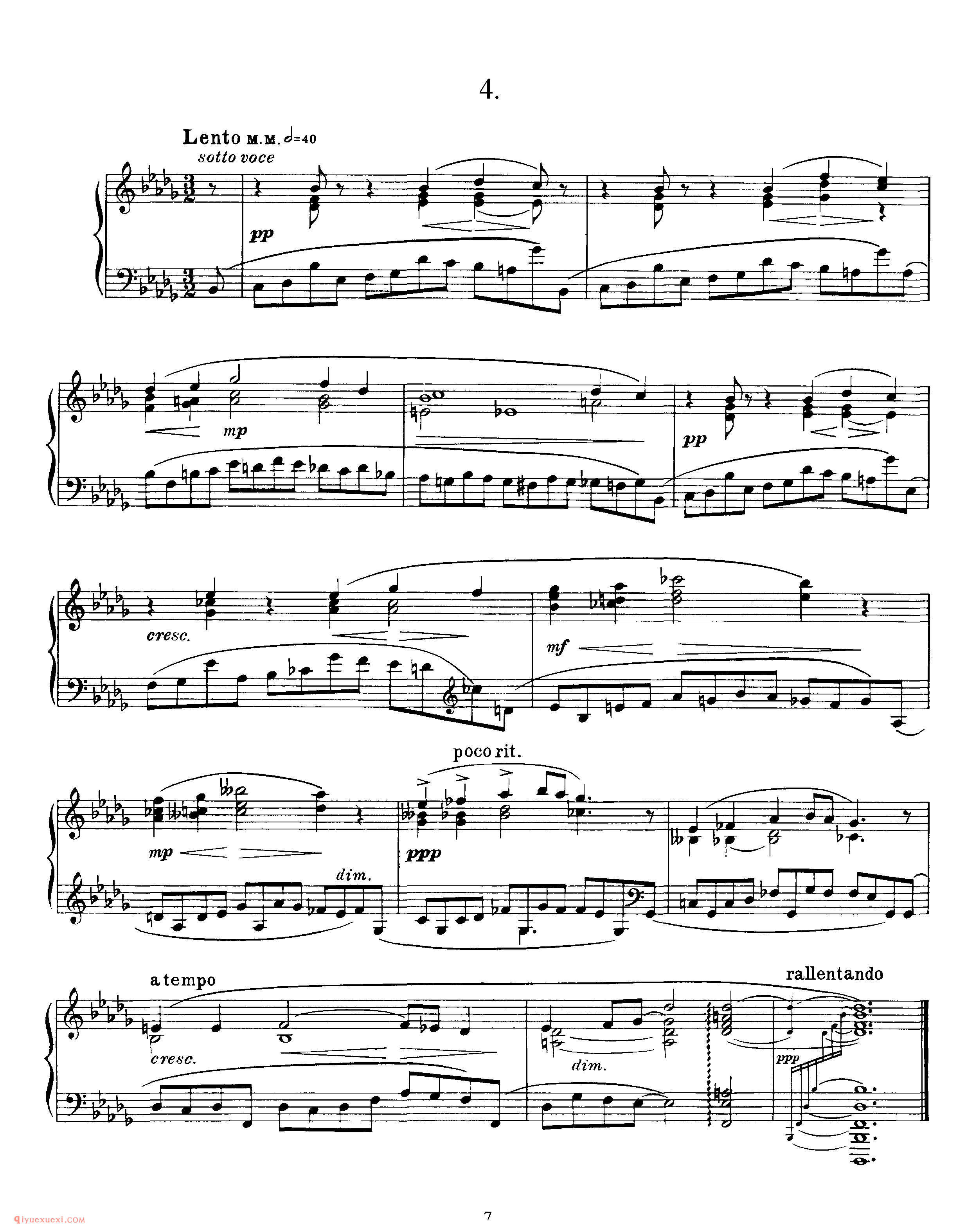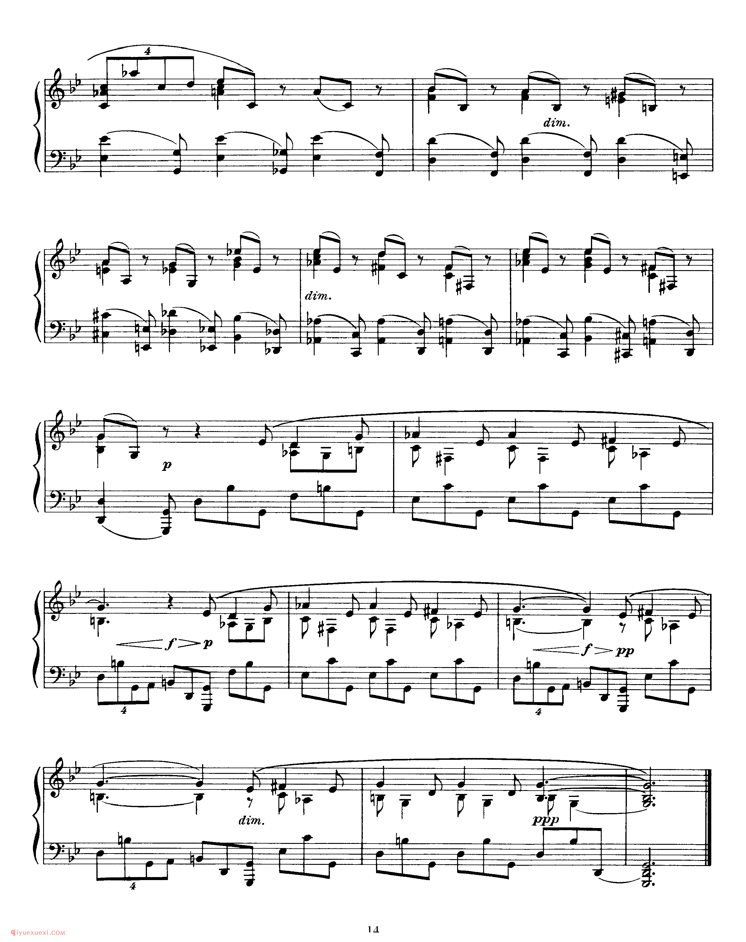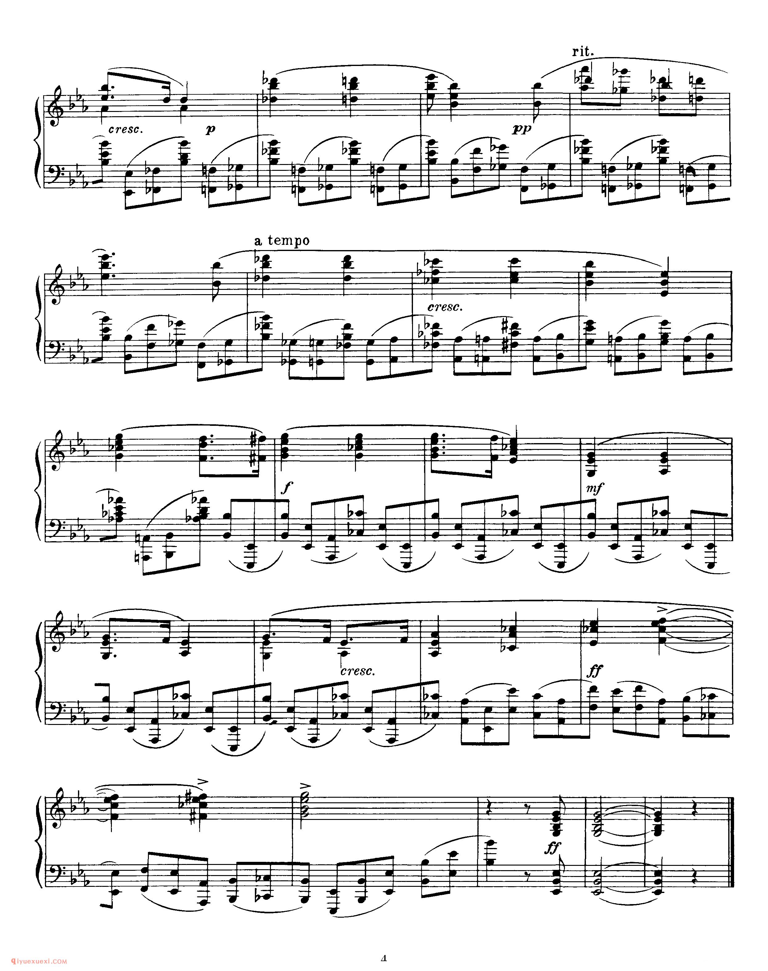 4. 降b小调,3/2拍,慢板。全曲笼罩在一片茫然之中。