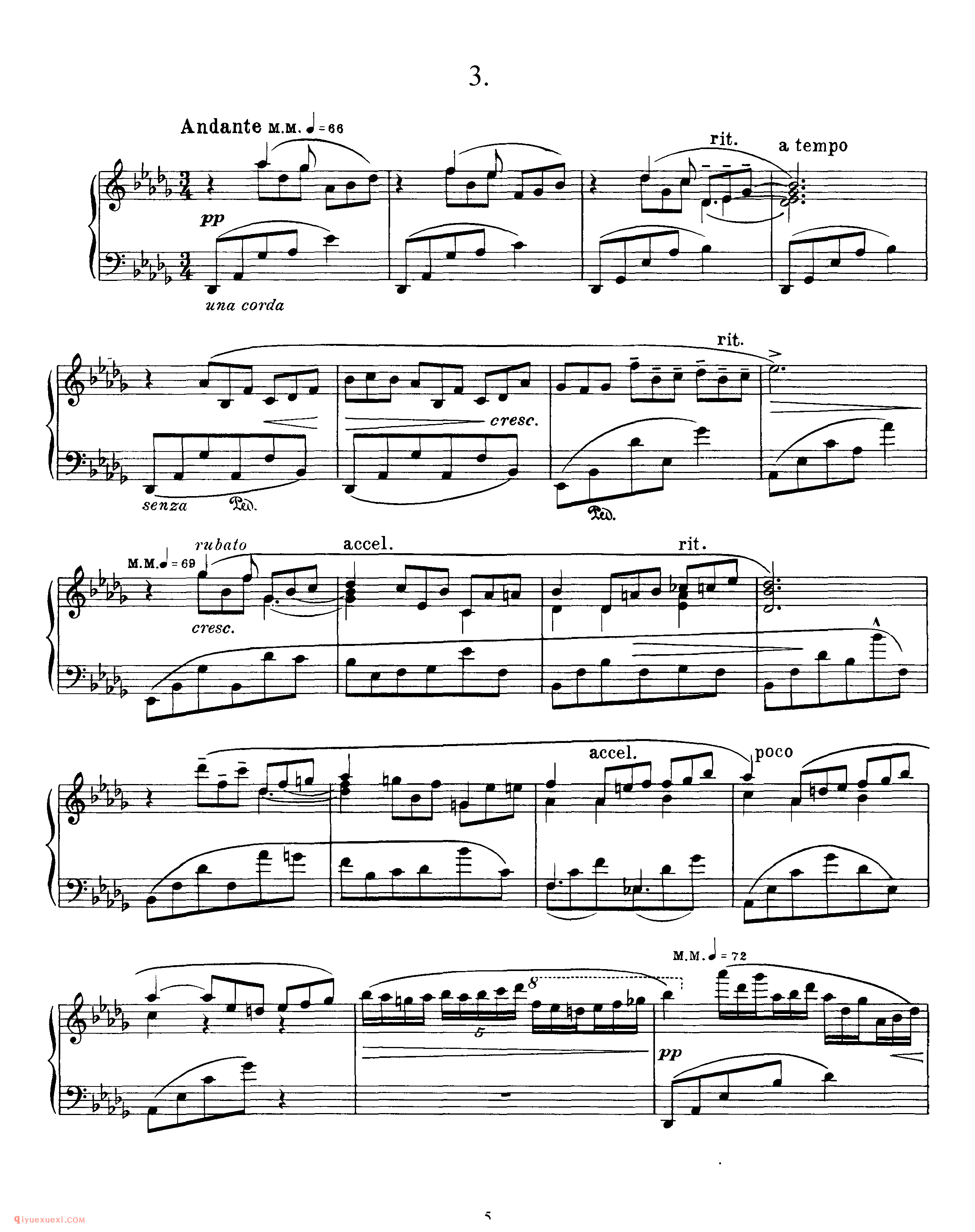 3. 降D大调,3/4拍,行板。梦幻般甜美的夜曲风格。