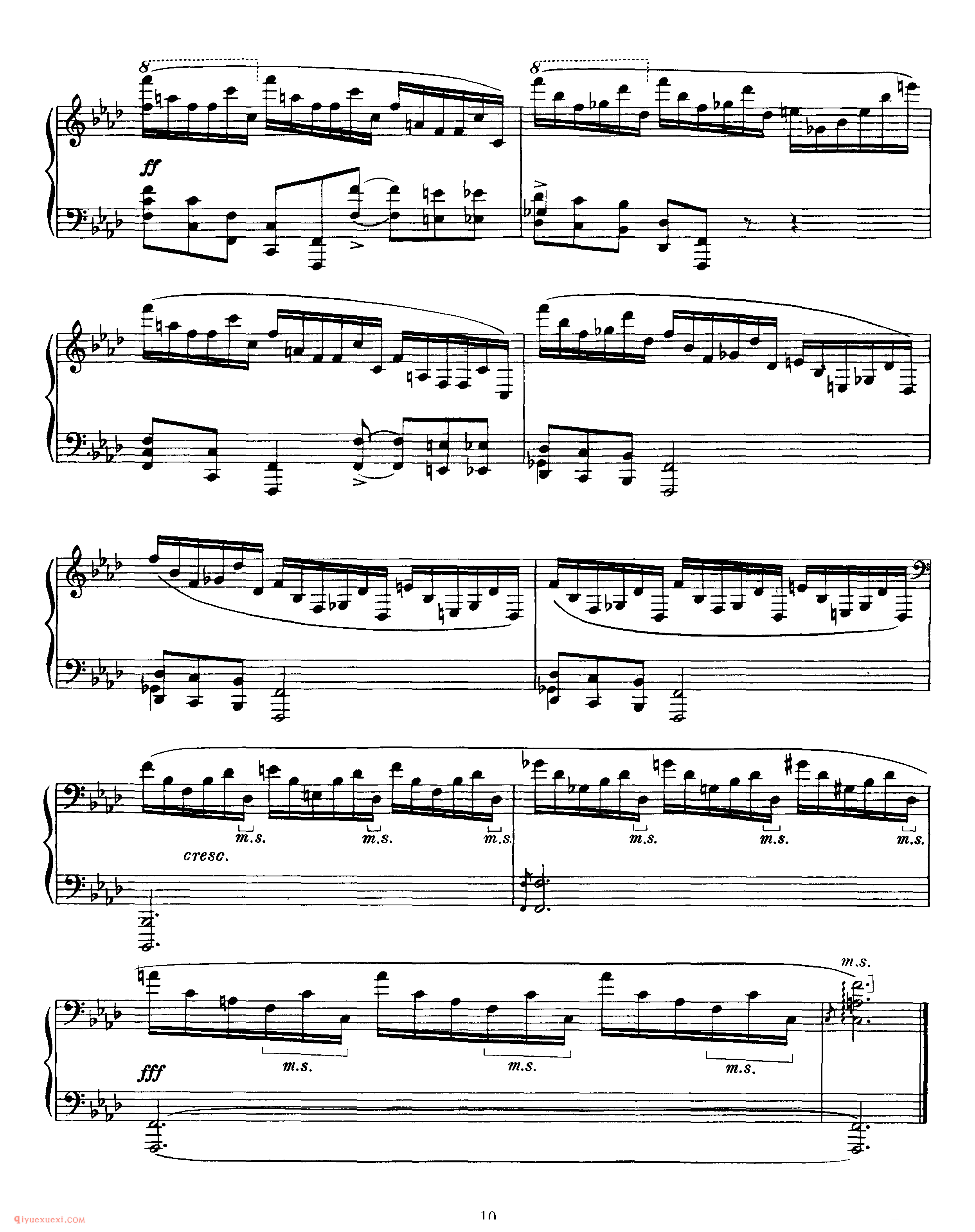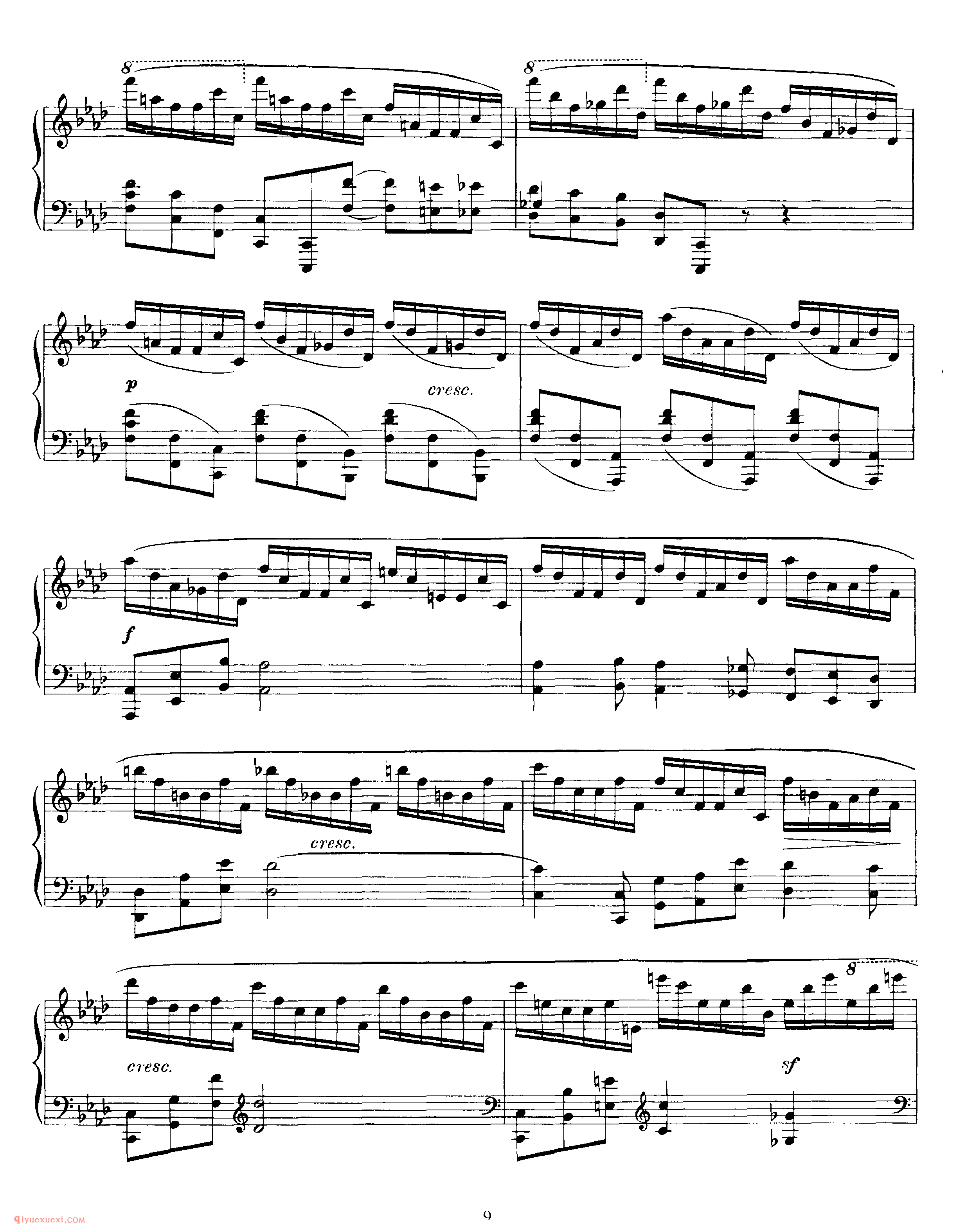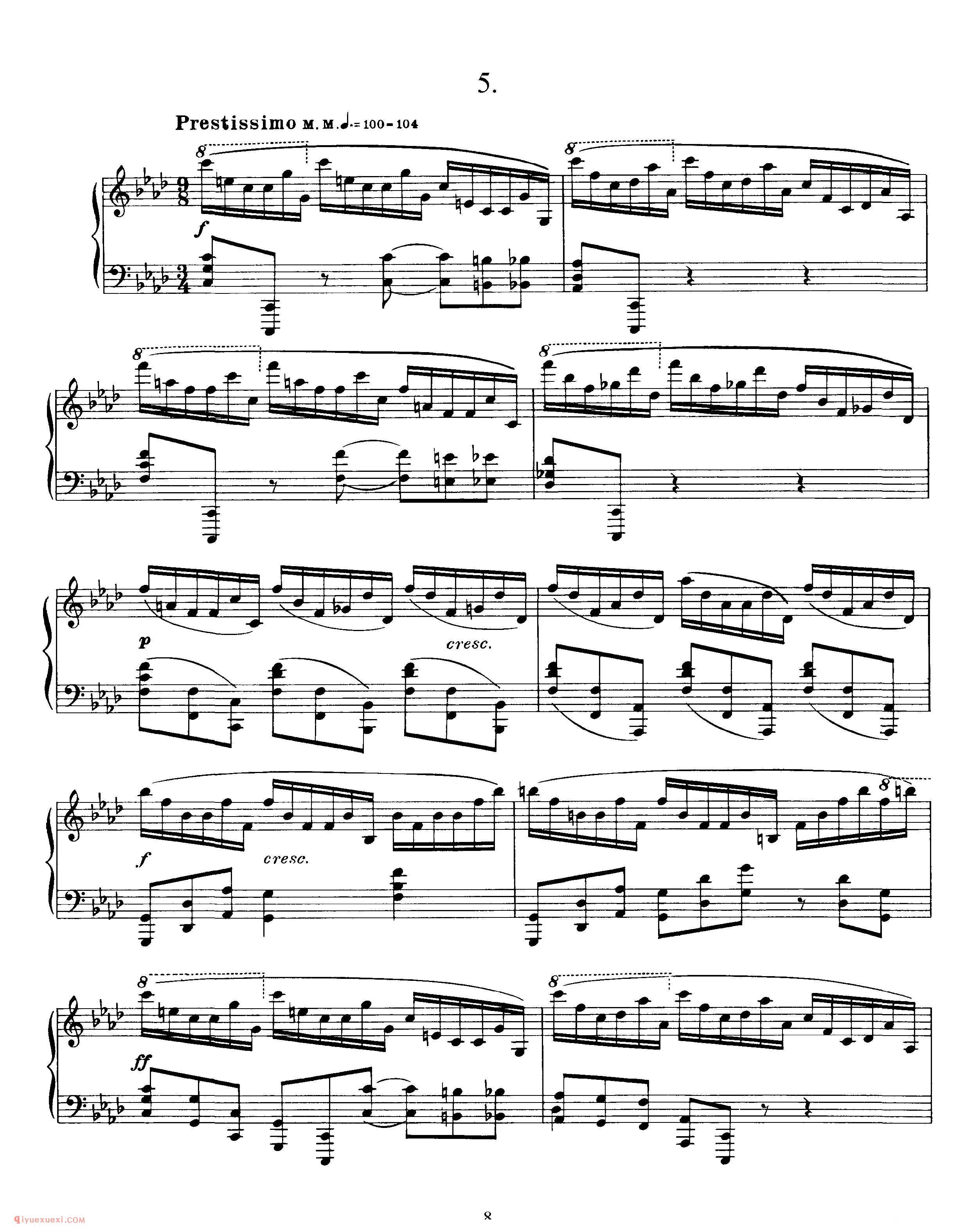 5. f小调,9/8拍,最急板。激动不安的情绪,宛如右手流畅和左手八度的练习曲。