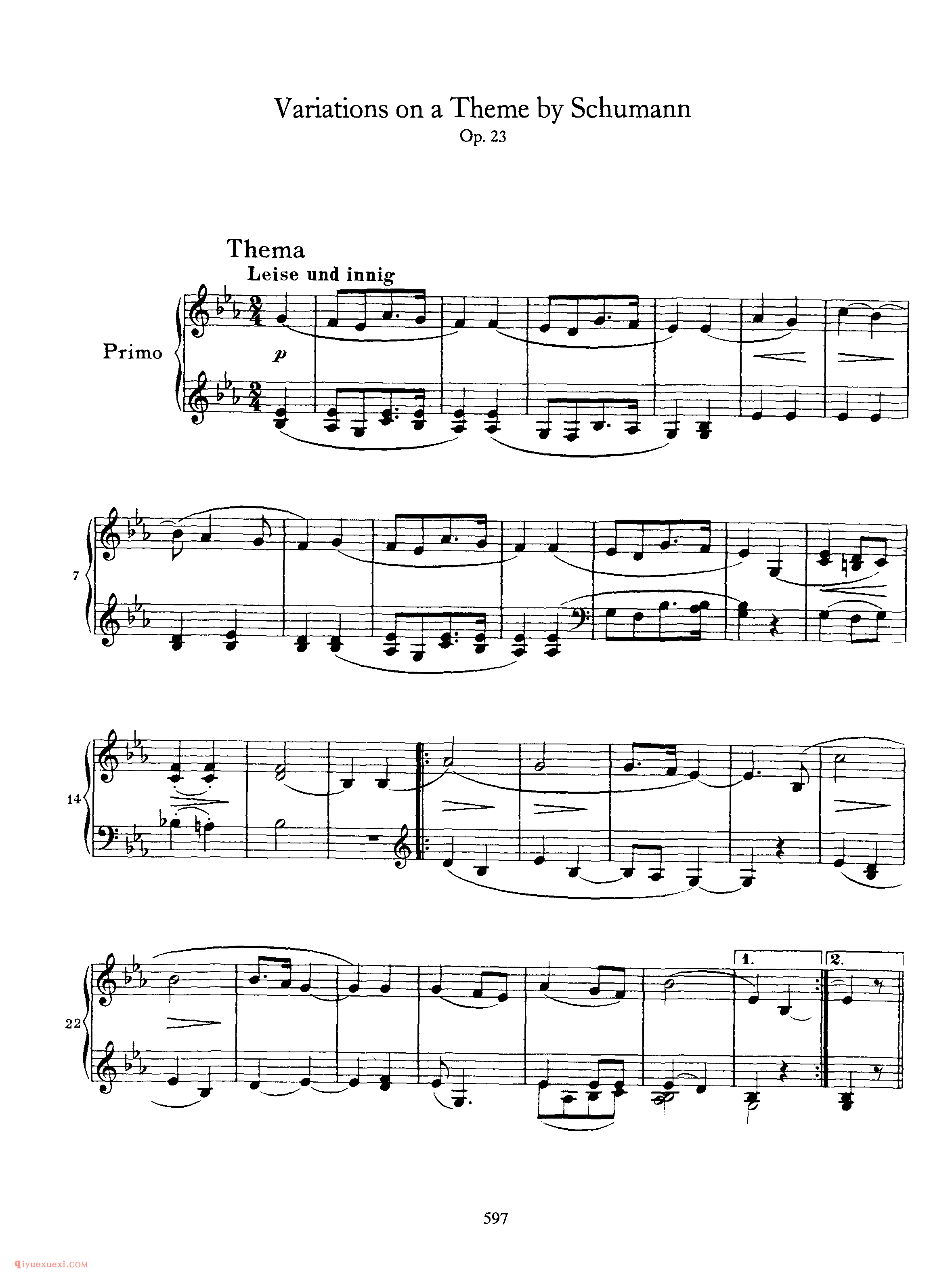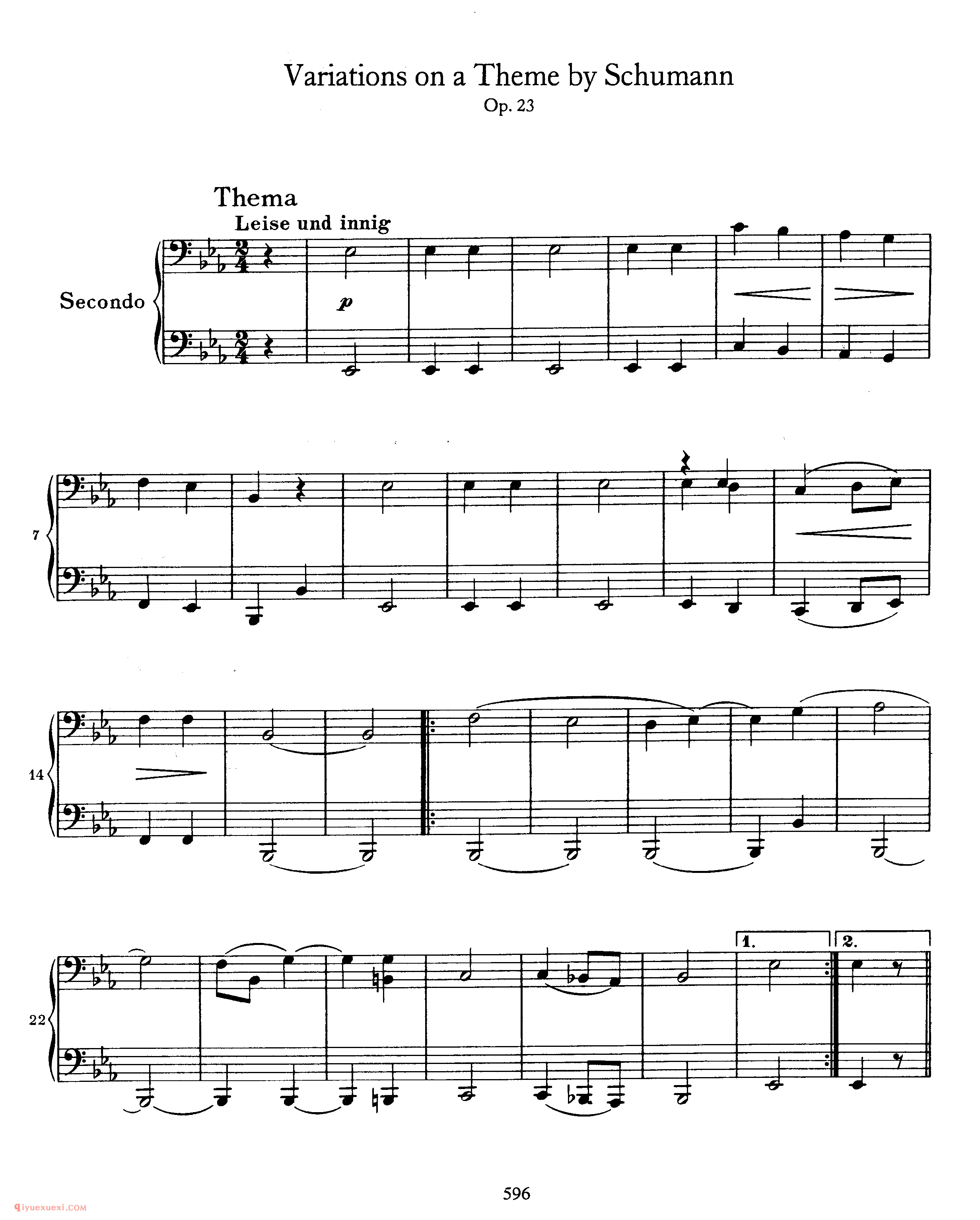勃拉姆斯四手联弹《舒曼主题变奏曲》作品Op.23_Variations on a Theme by Schumann, Op 23 (4 Hands)高清电子版乐谱歌词图片是器乐学习网于2021年11月21日 23:48:48更新分享的钢琴曲谱;资源收录于钢琴曲谱栏目中;器乐学习网免费分享勃拉姆斯四手联弹《舒曼主题变奏曲》作品Op.23_Variations on a Theme by Schumann, Op 23 (4 Hands)简谱与五线谱歌谱图片,欢迎在线免费下载;器乐学习网无需注册会员,直接免费下载各类乐器学习资源及乐谱。