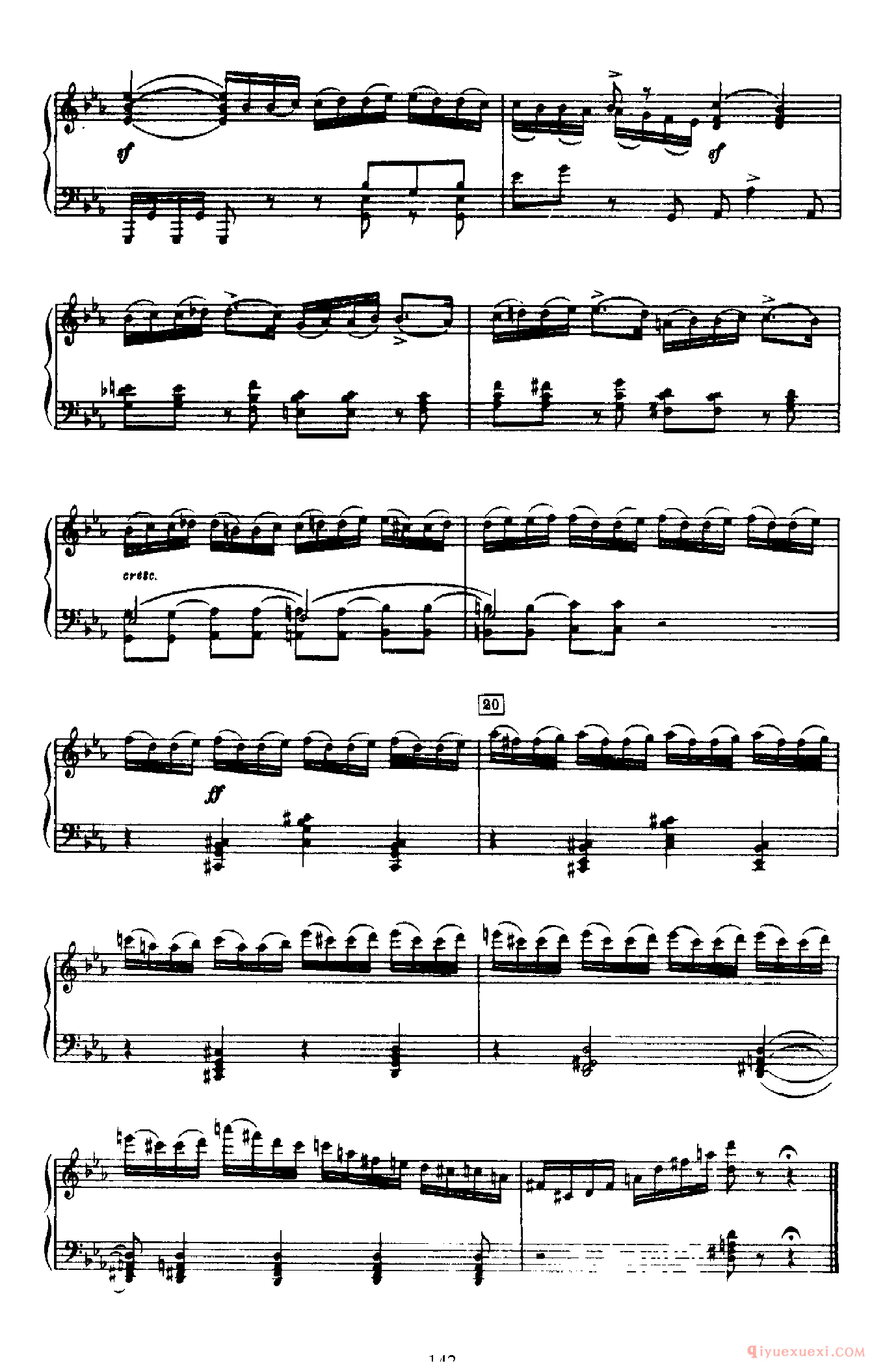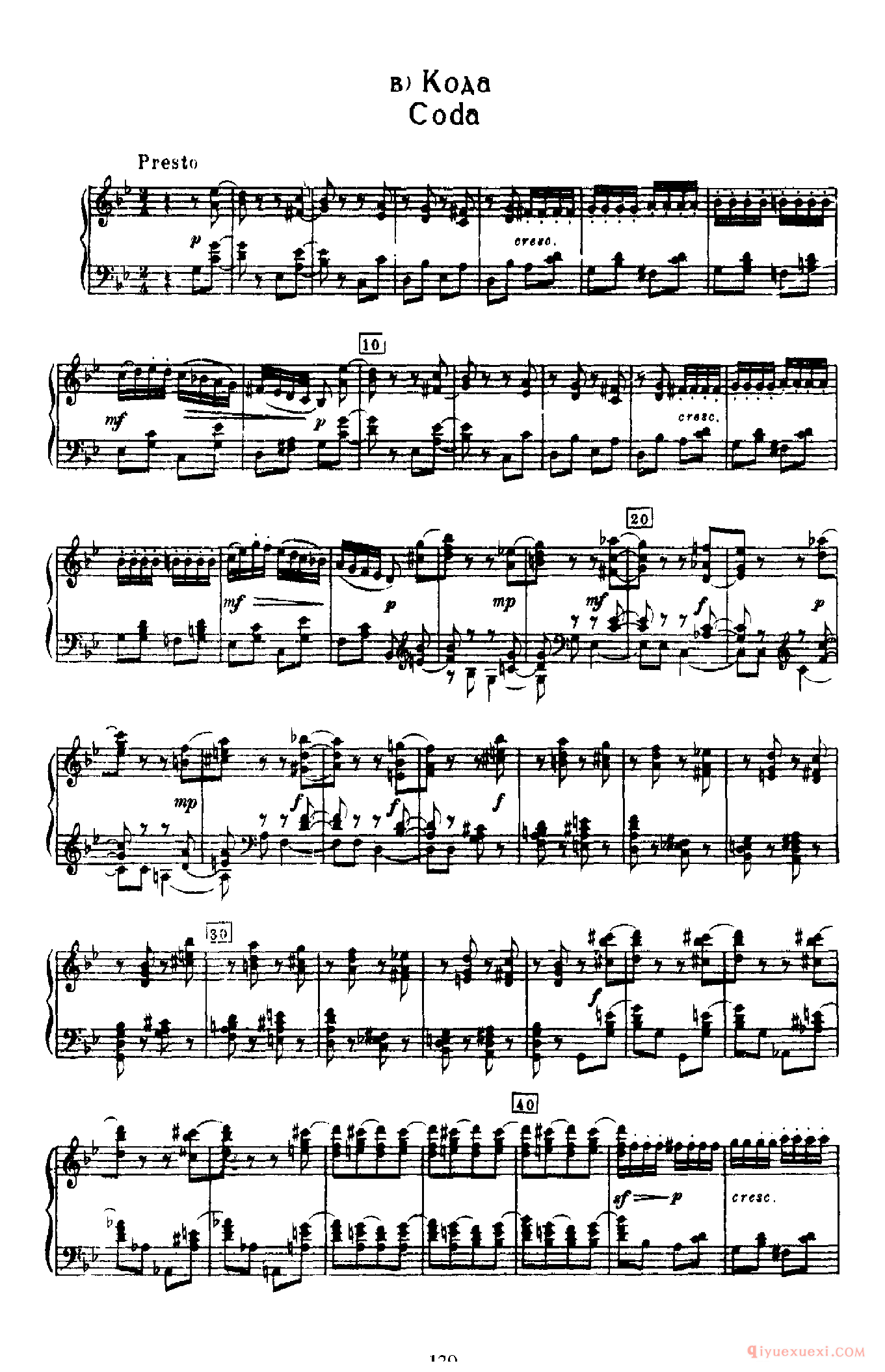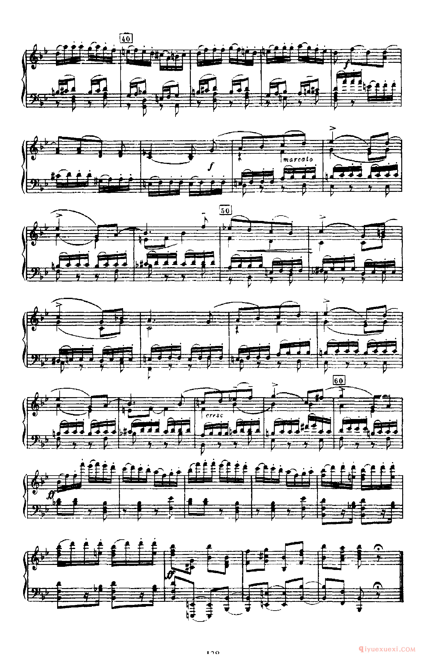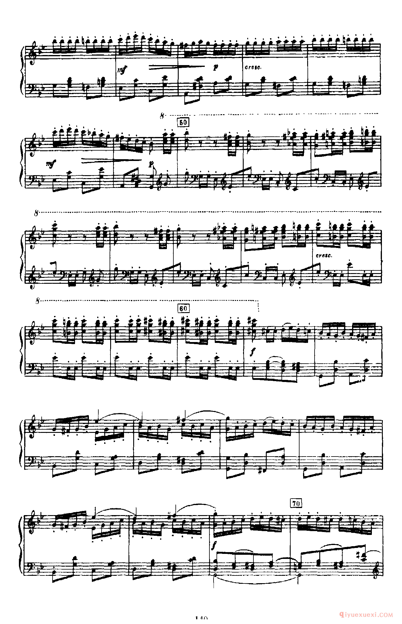 技巧: 1.这首作品和前面第八条的训练内容是一样的,都是音阶型的跑动练习,所不同的是这条练习曲以左手训练为主,左手需要注意的技巧要点和右手一样,仍然是换指动作的准确性。(具...