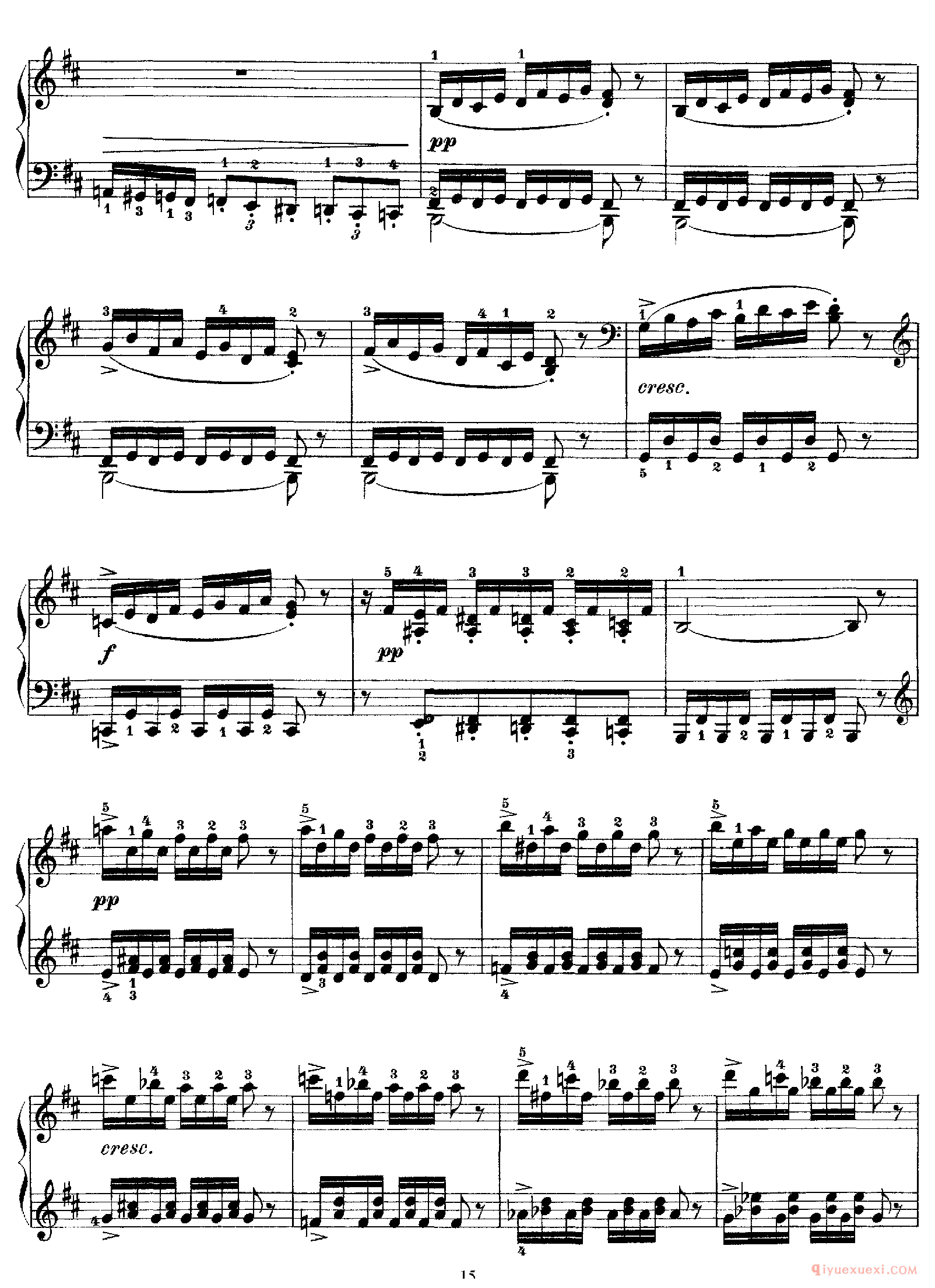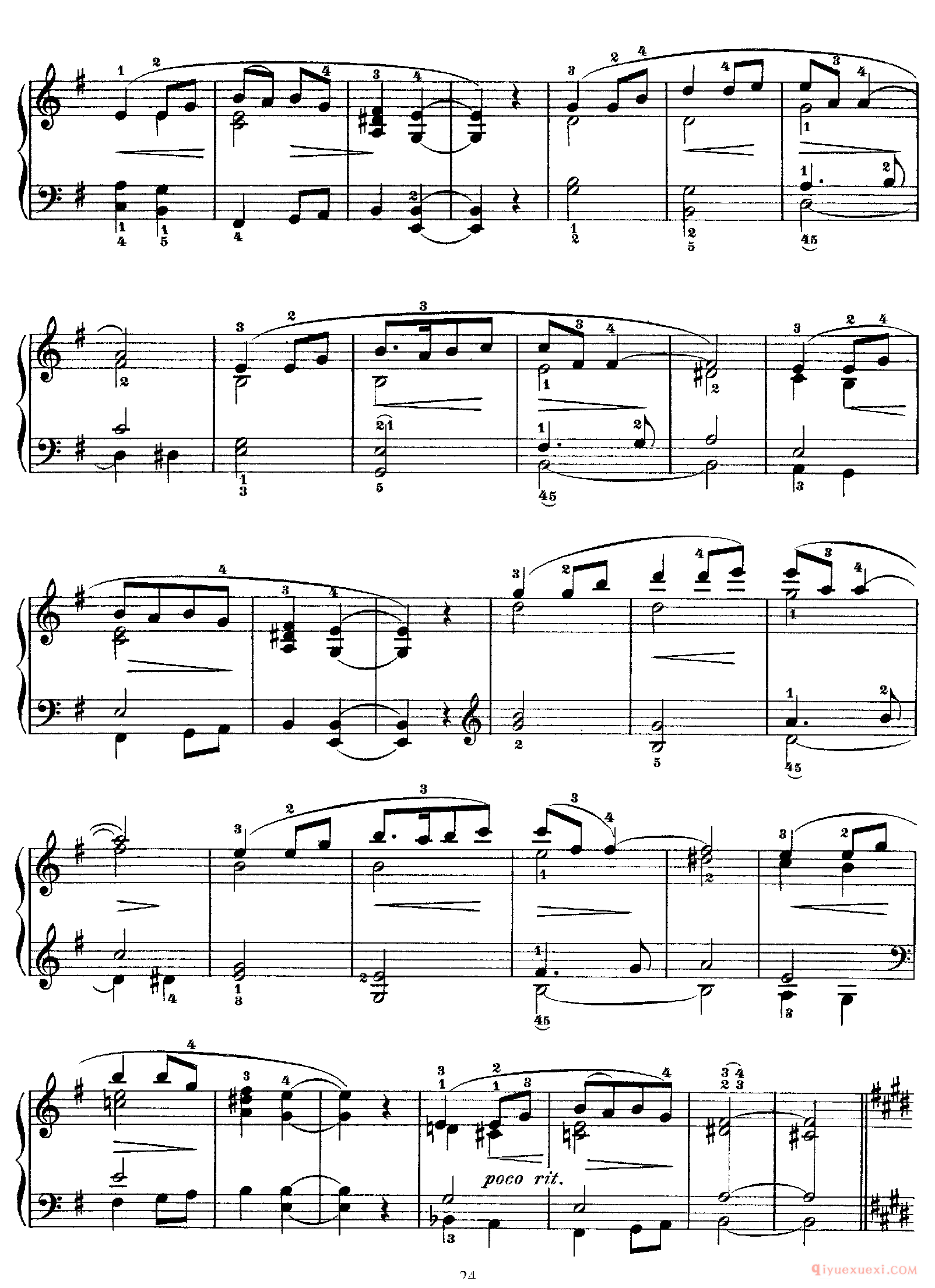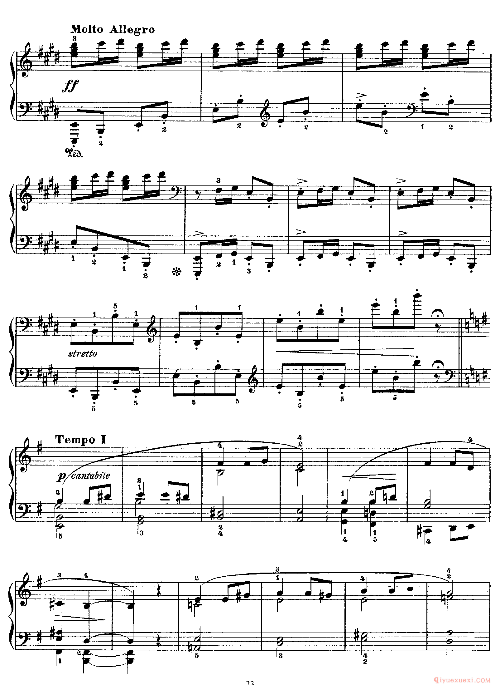 这首乐曲的左手弹奏时,小指既要站稳、保持,大指和三指又可略带轻微地带动手掌的翻动动作, 值得注意的是,19世纪的装饰音往往是在强拍之前弹奏的。因此第11小节的装饰音可从前一小节...