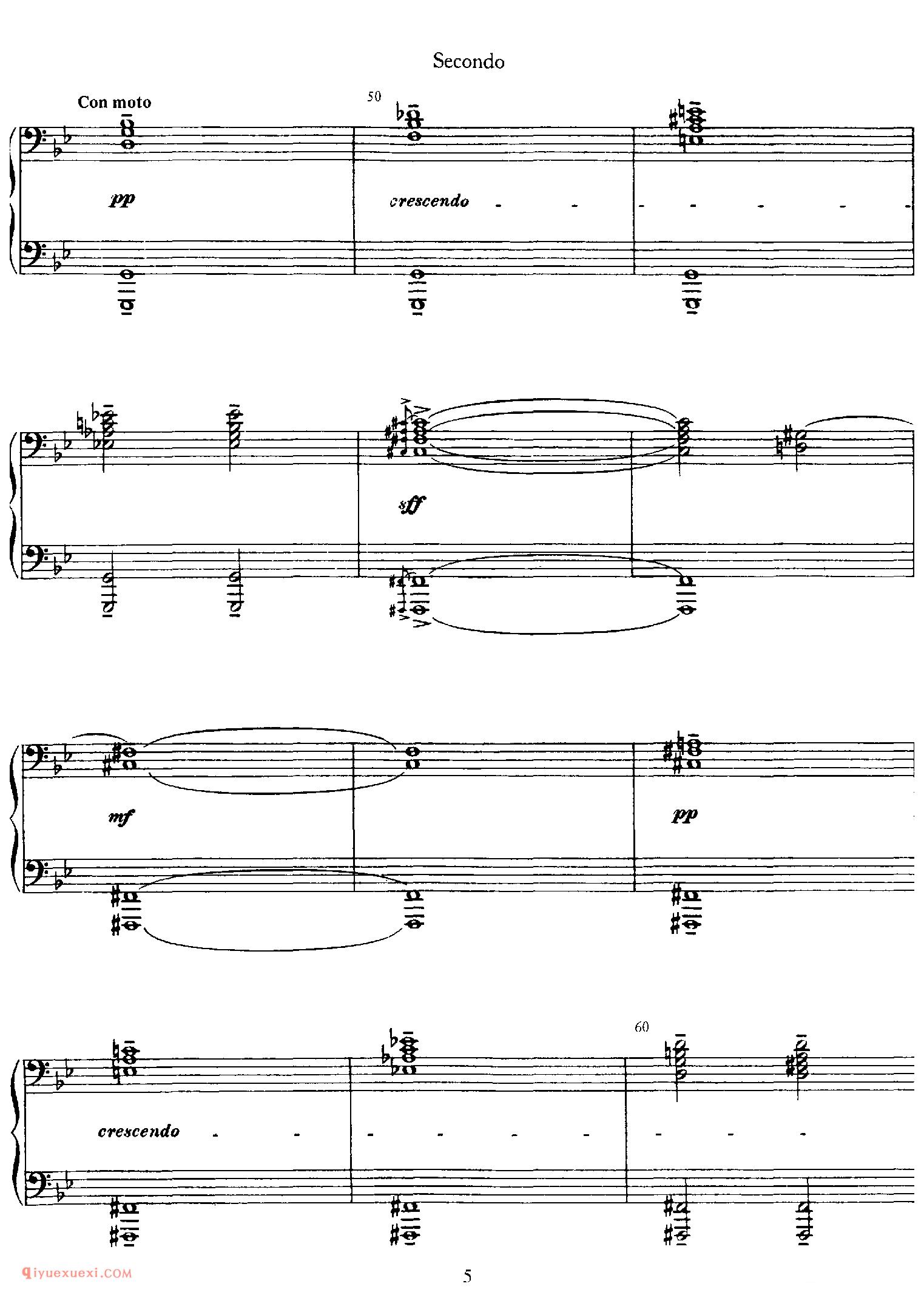 5. 浪漫曲 Romance ,c小调,9/8拍,生动的行板。这是一首纯朴、缠绵和抒情的晚期浪漫主义风格夜曲。