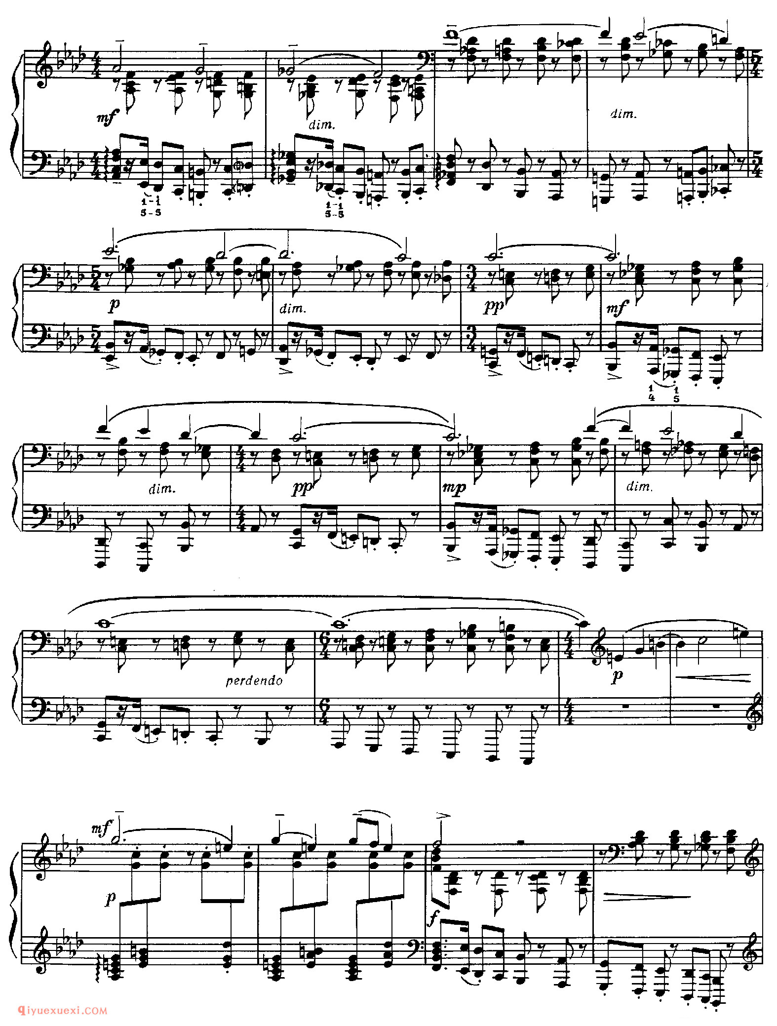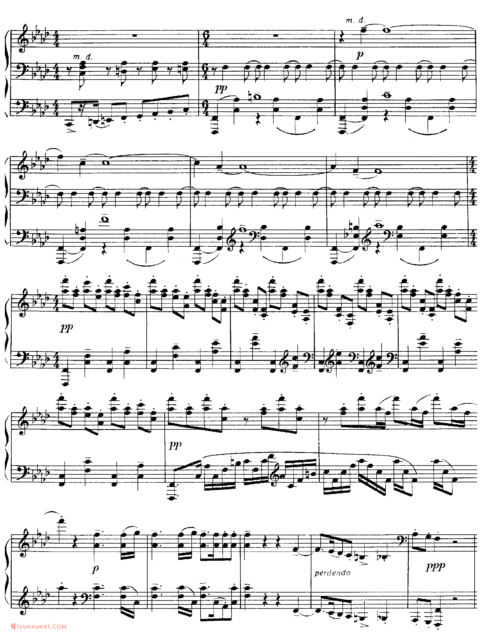 8.中板,G小调,在平静的分解和弦上,浮以哀愁的旋律。
