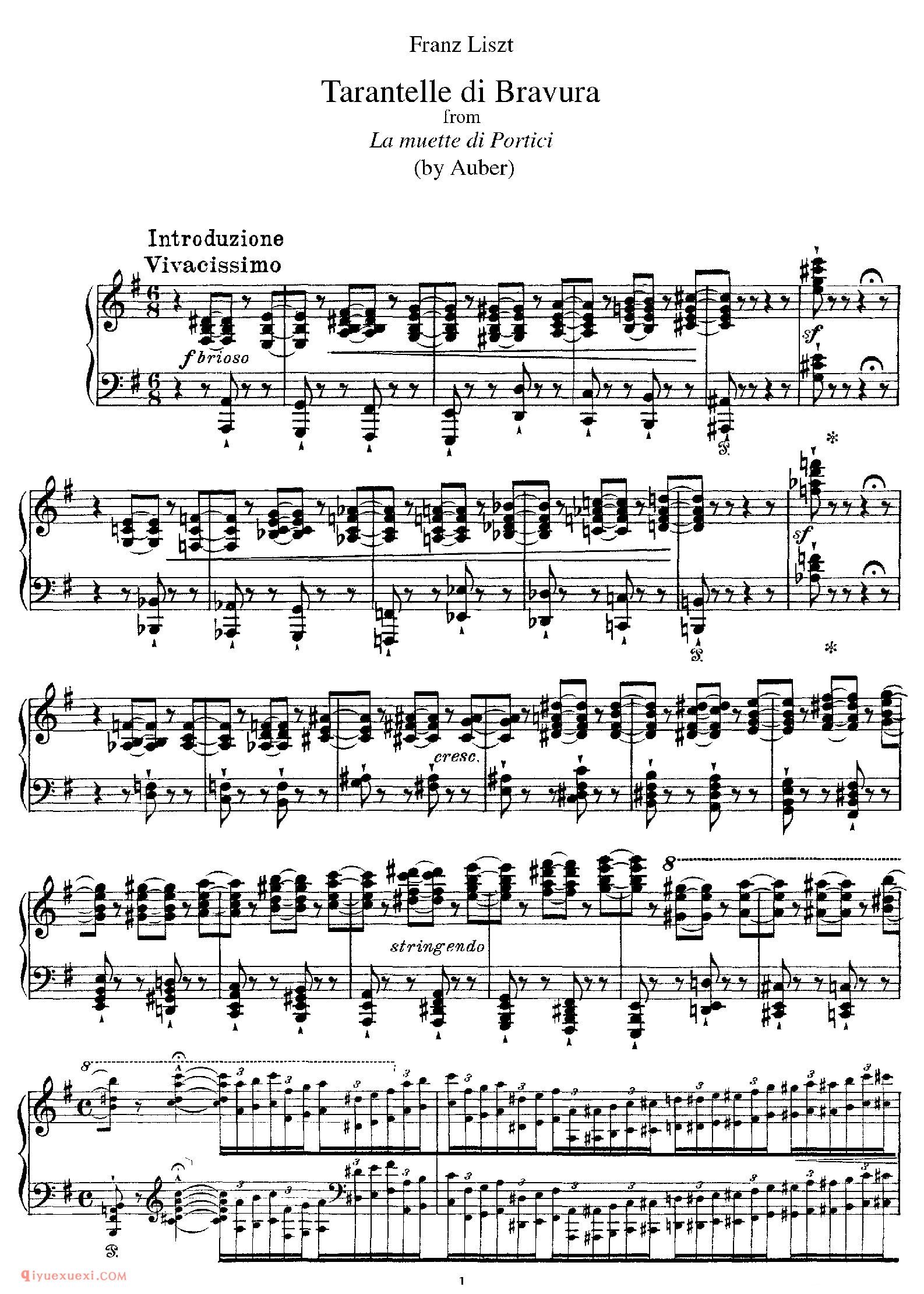 Tarantelle di Bravura (Auber)_改编其他人_李斯特钢琴乐谱高清电子版乐谱歌词图片是器乐学习网于2021年11月27日 16:44:45更新分享的钢琴曲谱;资源收录于钢琴曲谱栏目中;器乐学习网免费分享Tarantelle di Bravura (Auber)_改编其他人_李斯特钢琴乐谱简谱与五线谱歌谱图片,欢迎在线免费下载;器乐学习网无需注册会员,直接免费下载各类乐器学习资源及乐谱。
