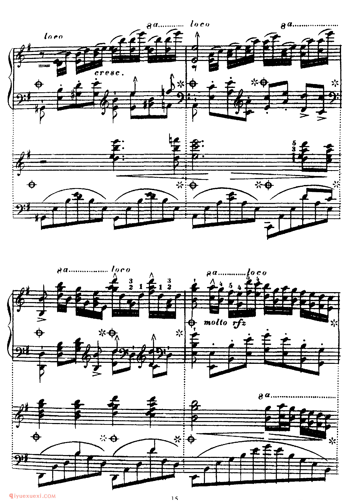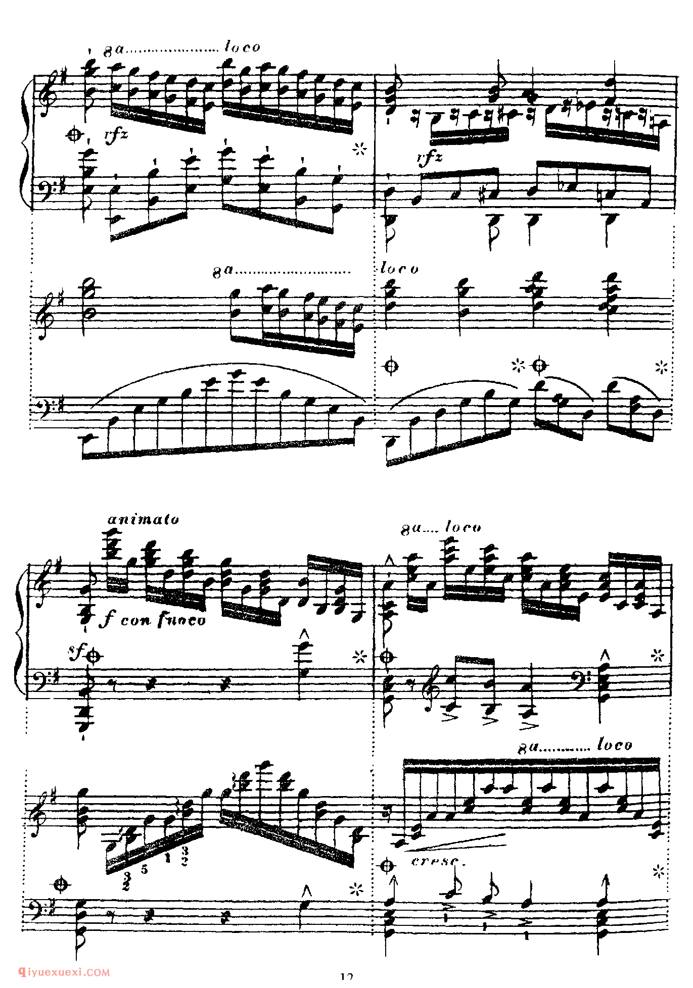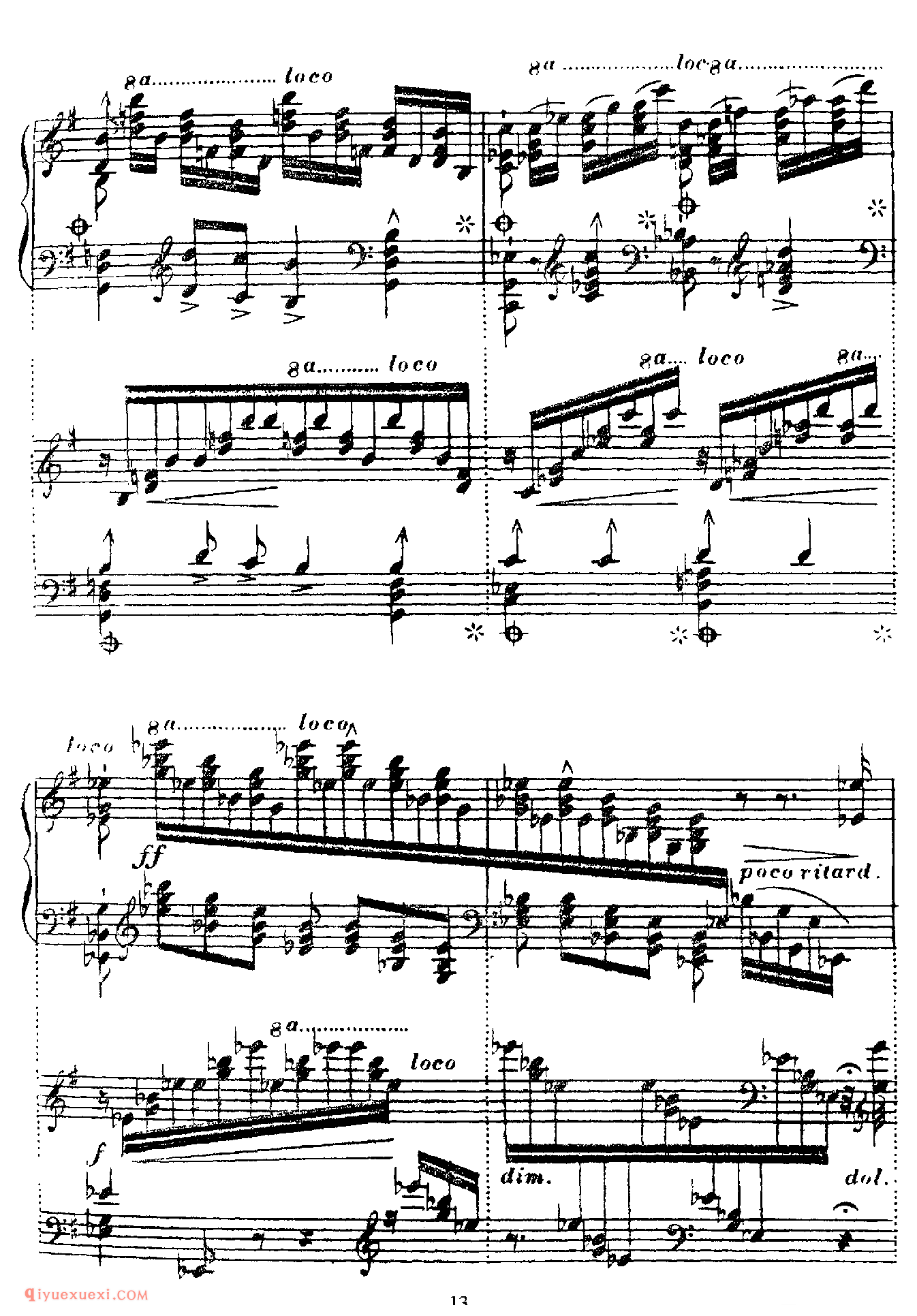 技巧: 1.这首作品和前面第八条的训练内容是一样的,都是音阶型的跑动练习,所不同的是这条练习曲以左手训练为主,左手需要注意的技巧要点和右手一样,仍然是换指动作的准确性。(具...