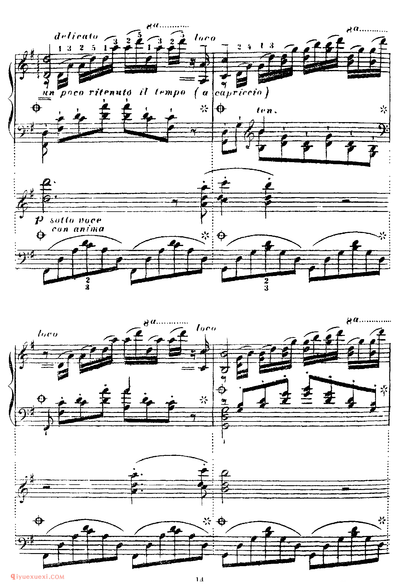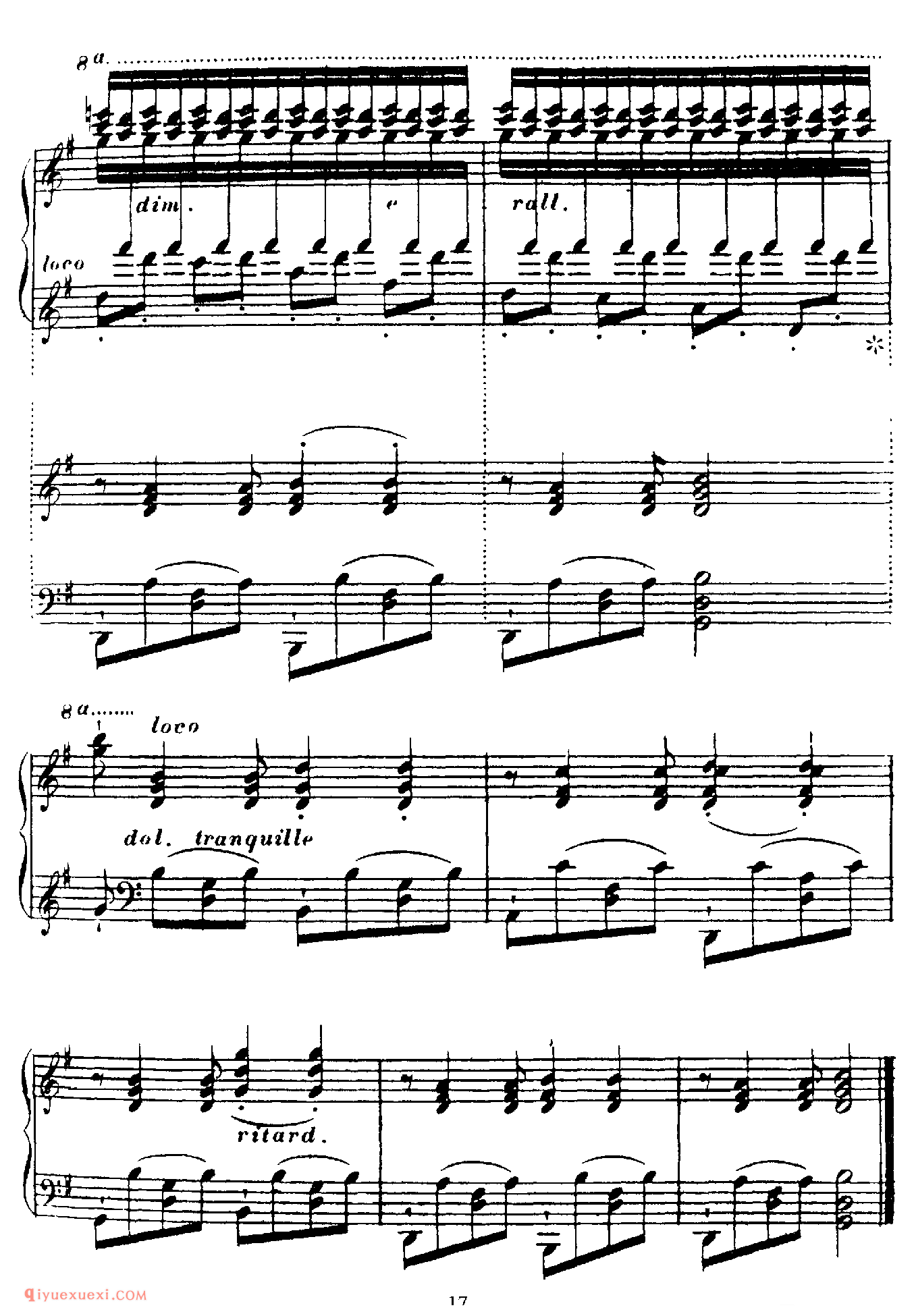 这首乐曲的左手弹奏时,小指既要站稳、保持,大指和三指又可略带轻微地带动手掌的翻动动作, 值得注意的是,19世纪的装饰音往往是在强拍之前弹奏的。因此第11小节的装饰音可从前一小节...