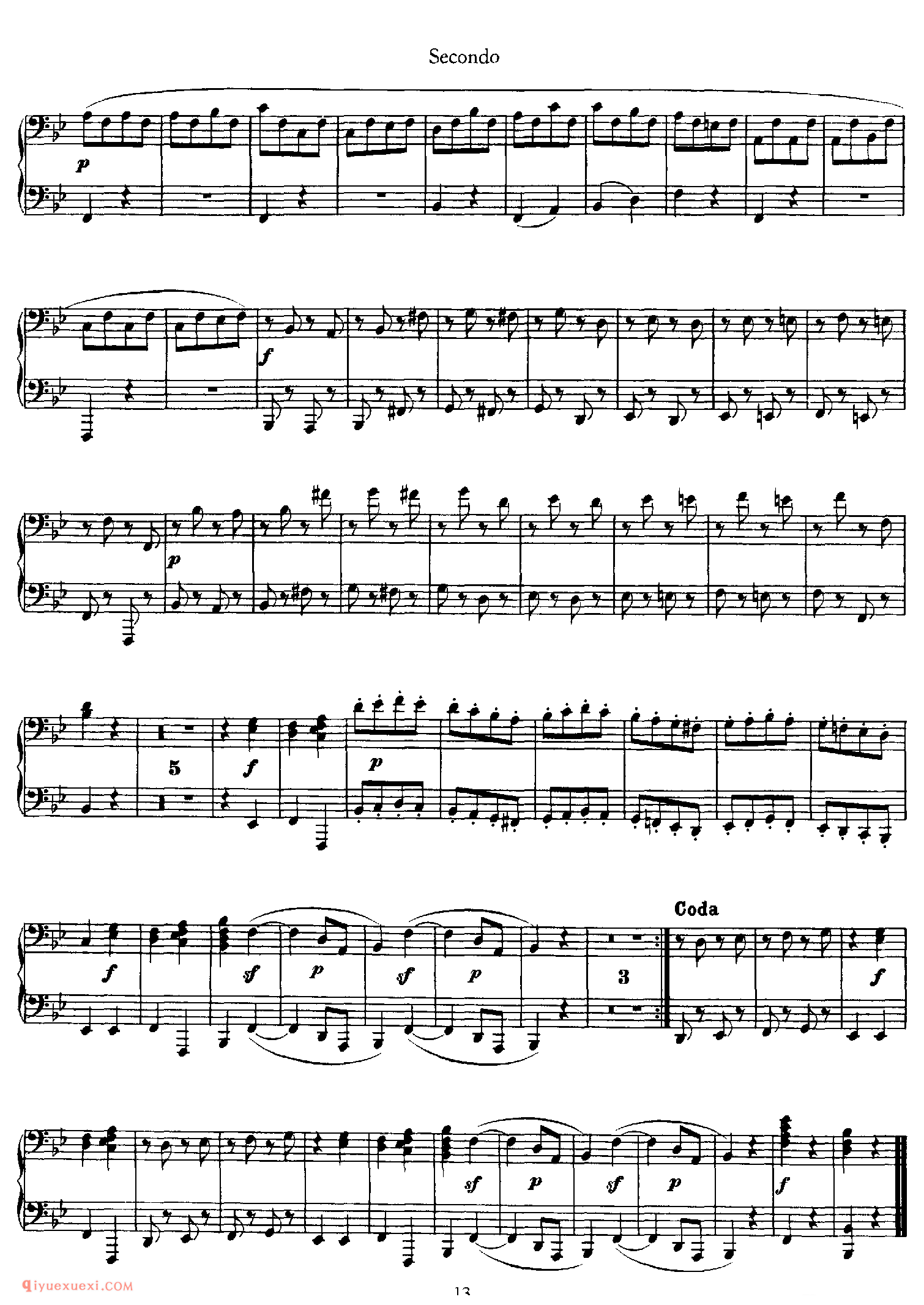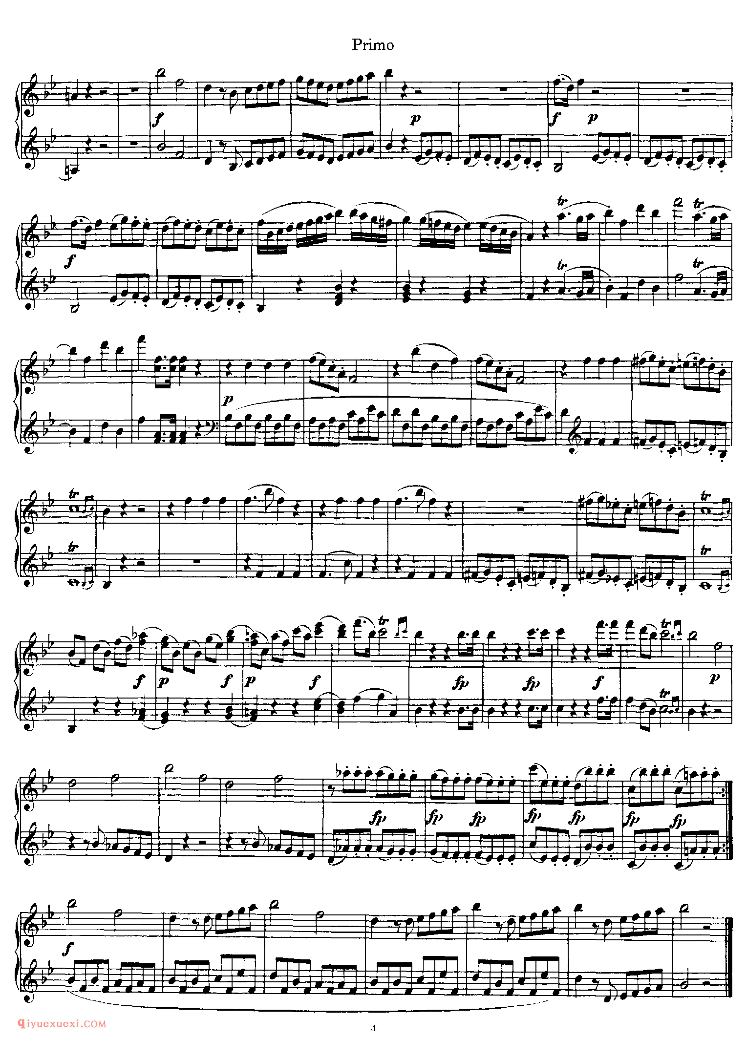 莫扎特 B大调奏鸣曲Sonata in Bb, K 358 (4 Hands)_四手联弹_莫扎特钢琴谱高清电子版乐谱歌词图片是器乐学习网于2021年11月30日 16:13:33更新分享的钢琴曲谱;资源收录于钢琴曲谱栏目中;器乐学习网免费分享莫扎特 B大调奏鸣曲Sonata in Bb, K 358 (4 Hands)_四手联弹_莫扎特钢琴谱简谱与五线谱歌谱图片,欢迎在线免费下载;器乐学习网无需注册会员,直接免费下载各类乐器学习资源及乐谱。