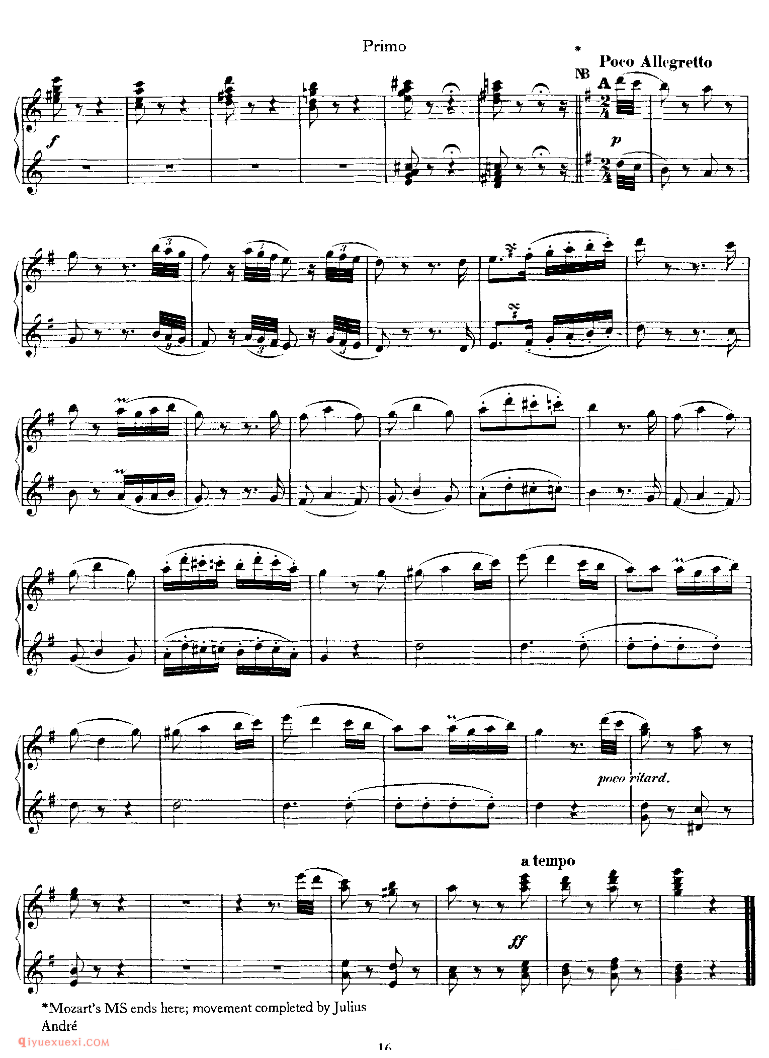 莫扎特四手联弹奏鸣曲_Sonata in G, K 357 (incomplete) (4 Hands)_莫扎特钢琴谱高清电子版乐谱歌词图片是器乐学习网于2021年11月30日 16:26:21更新分享的钢琴曲谱;资源收录于钢琴曲谱栏目中;器乐学习网免费分享莫扎特四手联弹奏鸣曲_Sonata in G, K 357 (incomplete) (4 Hands)_莫扎特钢琴谱简谱与五线谱歌谱图片,欢迎在线免费下载;器乐学习网无需注册会员,直接免费下载各类乐器学习资源及乐谱。