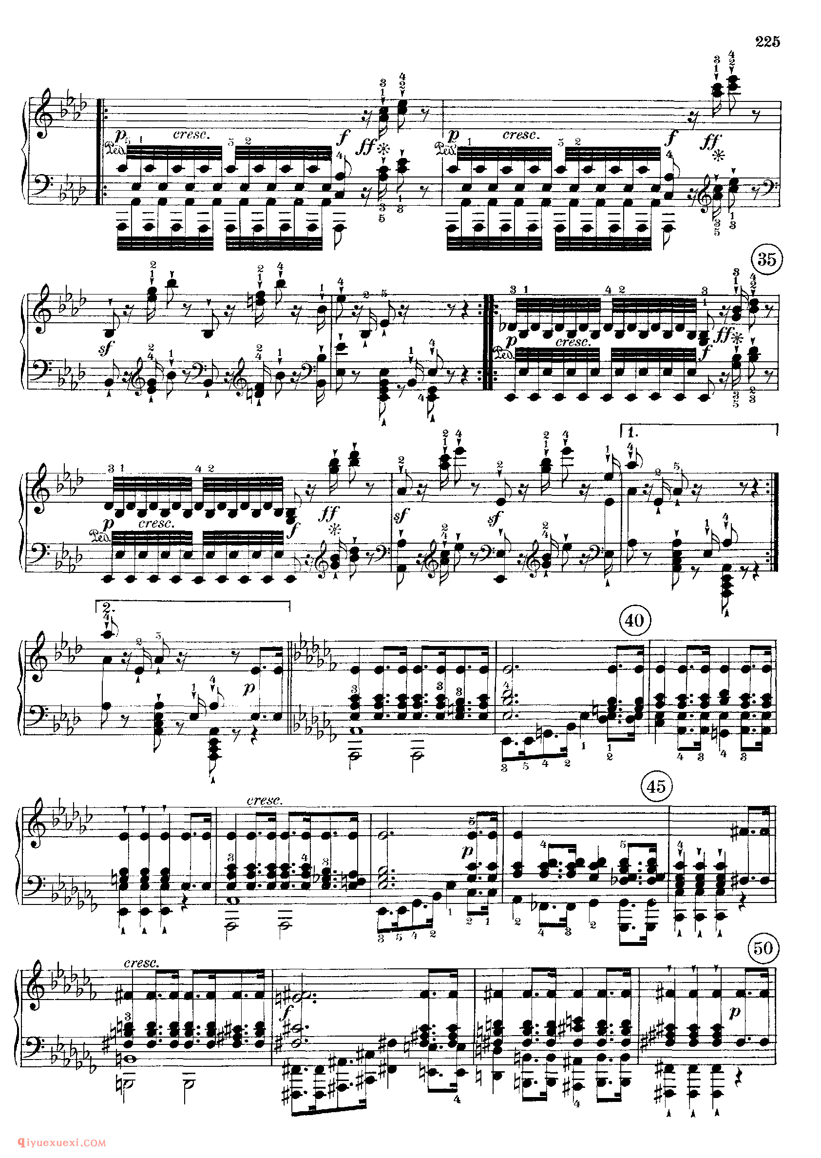 技巧: 1.这首作品和前面第八条的训练内容是一样的,都是音阶型的跑动练习,所不同的是这条练习曲以左手训练为主,左手需要注意的技巧要点和右手一样,仍然是换指动作的准确性。(具...