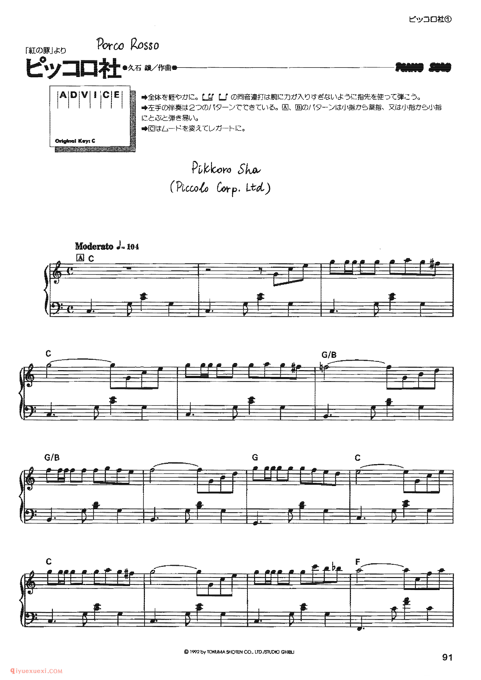 Porco - Piccolo Corp Ltd_宫崎骏动画作品选曲高清电子版乐谱歌词图片是器乐学习网于2021年12月01日 22:06:38更新分享的钢琴曲谱;资源收录于钢琴曲谱栏目中;器乐学习网免费分享Porco - Piccolo Corp Ltd_宫崎骏动画作品选曲简谱与五线谱歌谱图片,欢迎在线免费下载;器乐学习网无需注册会员,直接免费下载各类乐器学习资源及乐谱。