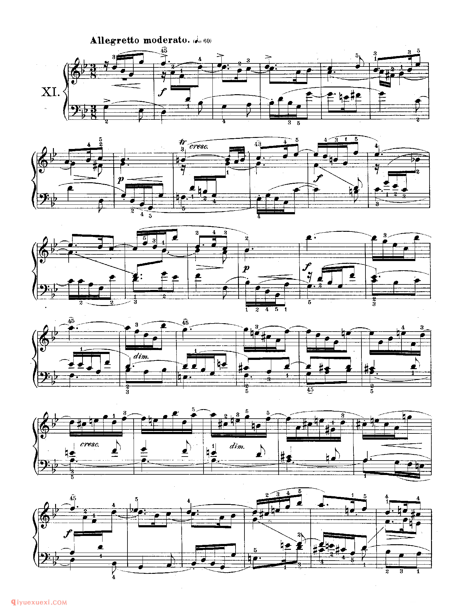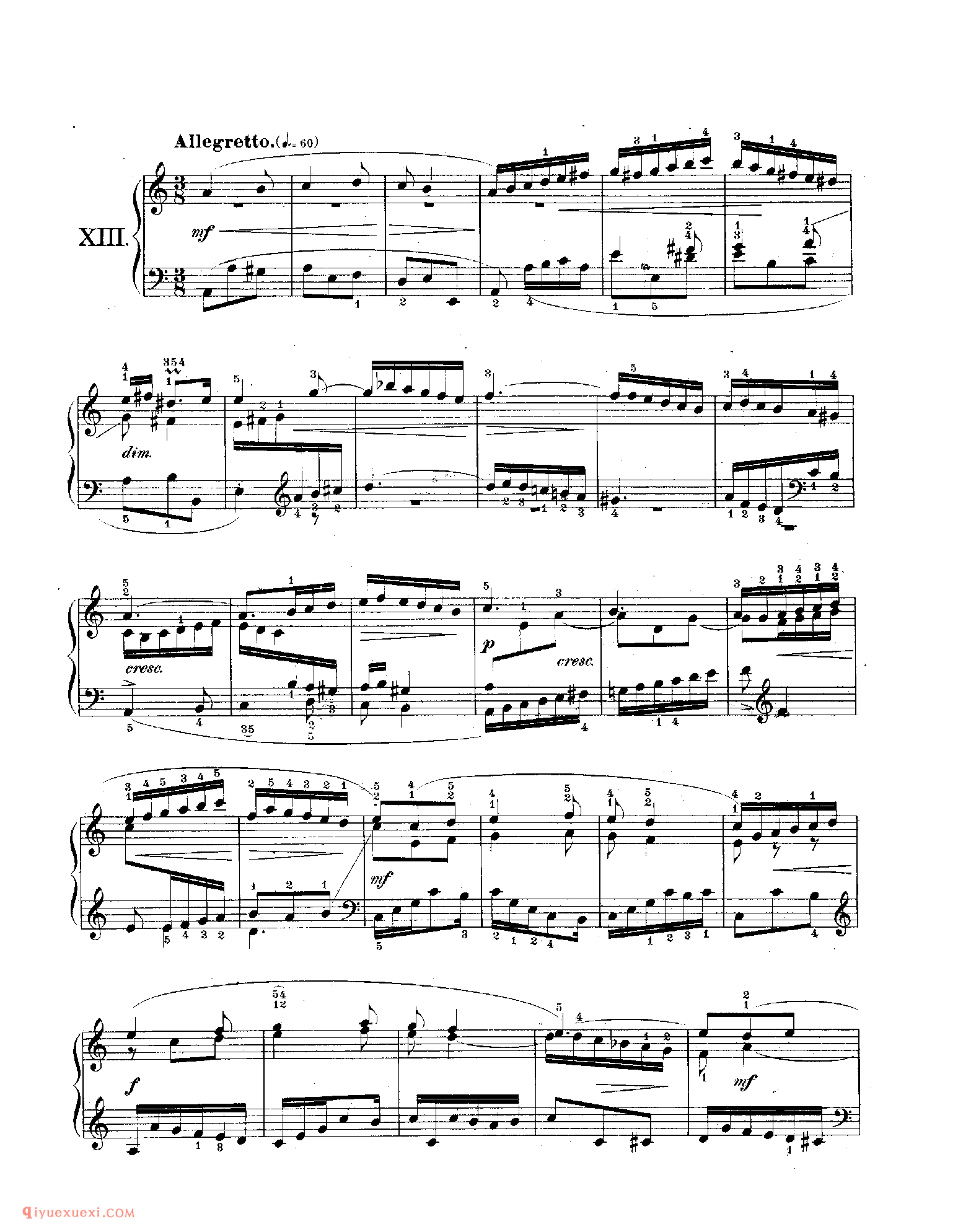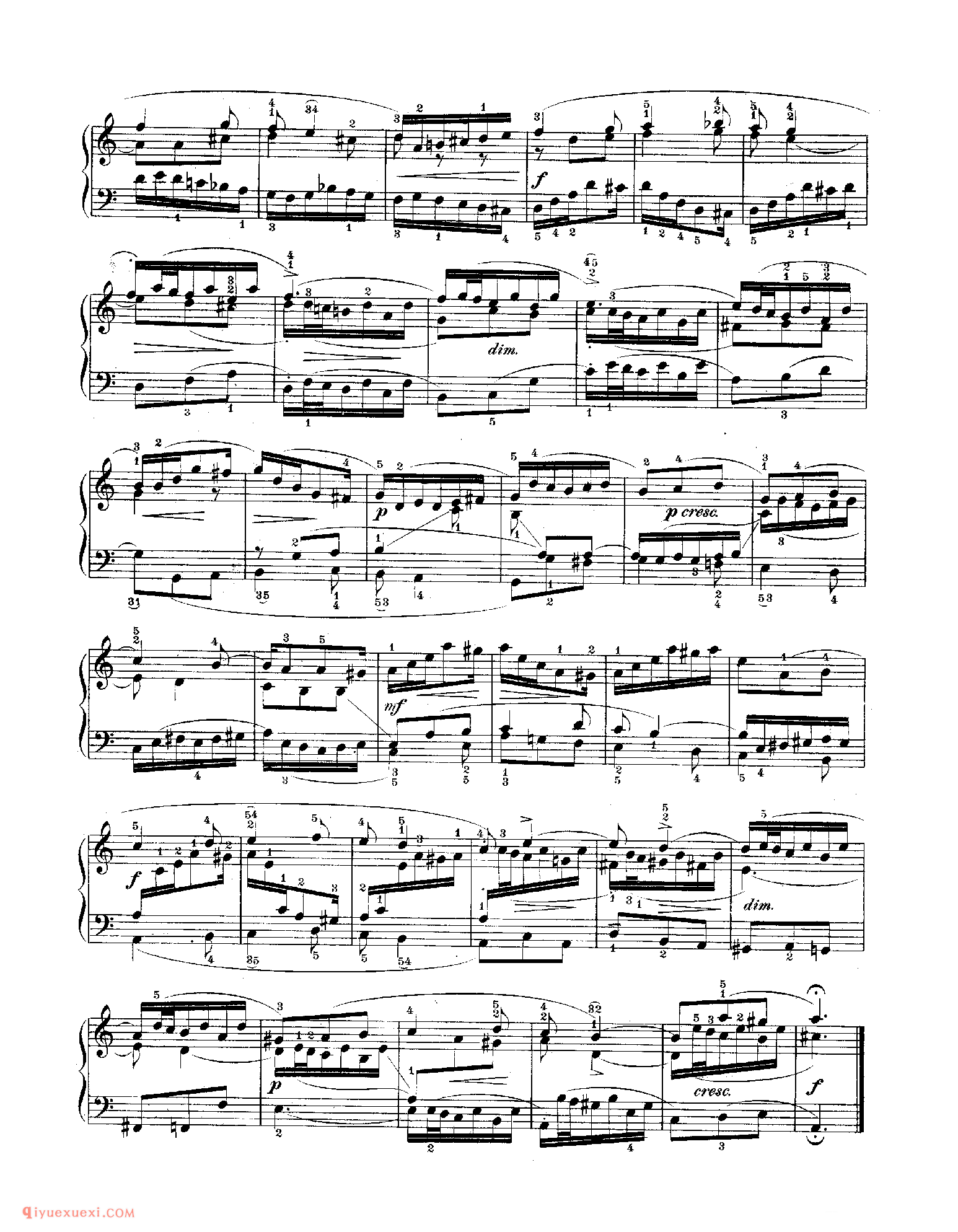 技巧: 1.这首作品和前面第八条的训练内容是一样的,都是音阶型的跑动练习,所不同的是这条练习曲以左手训练为主,左手需要注意的技巧要点和右手一样,仍然是换指动作的准确性。(具...