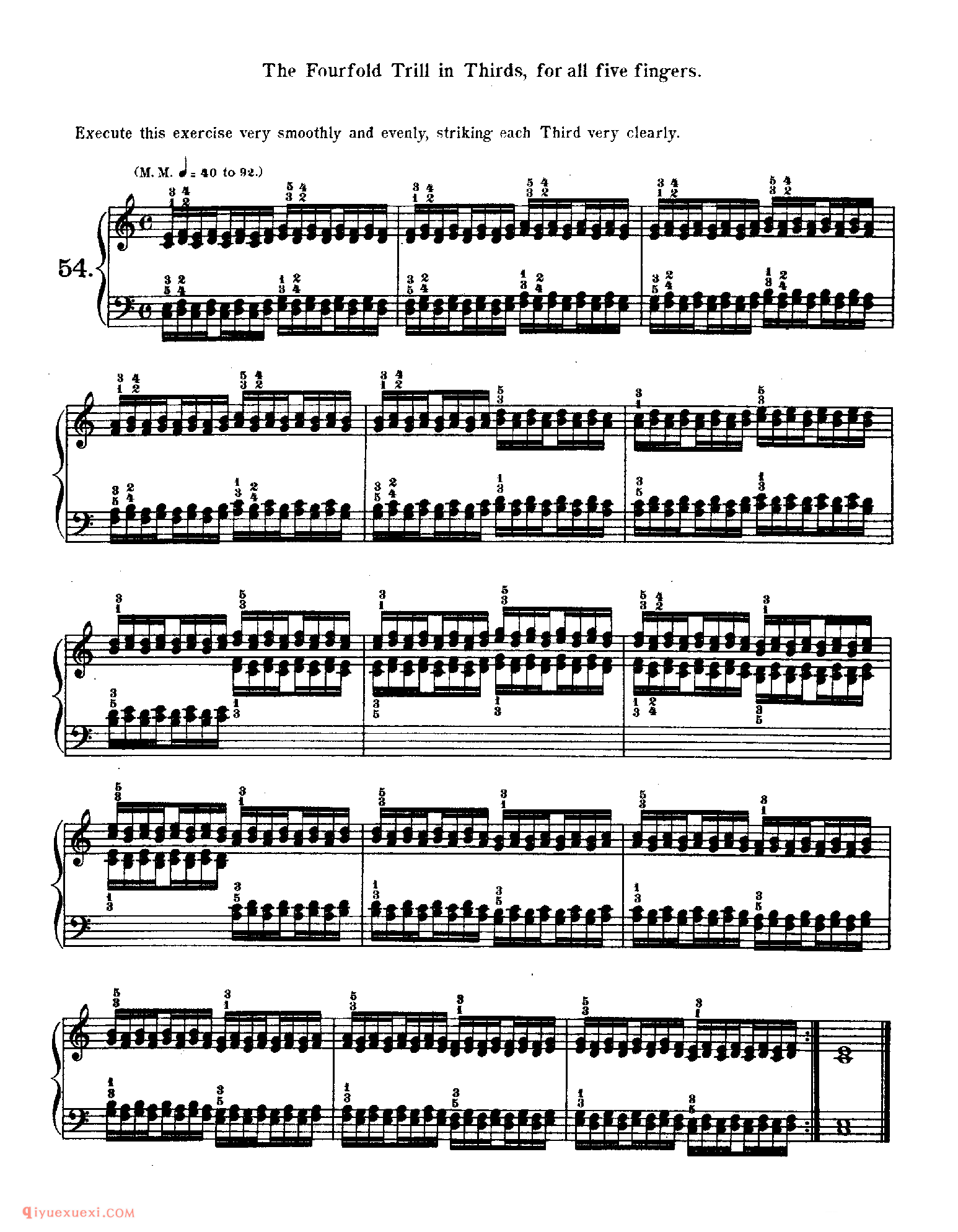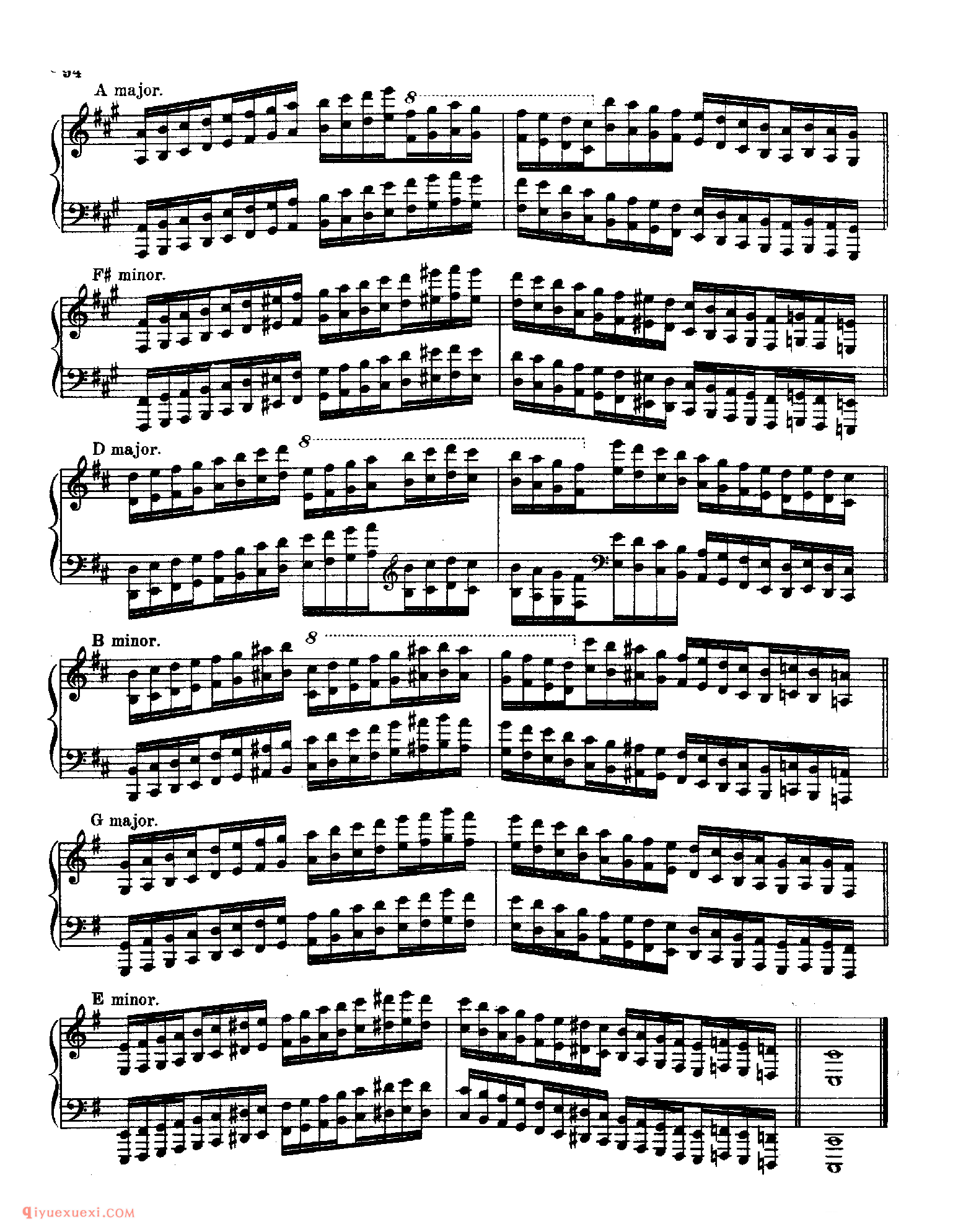 技巧: 1.这首作品和前面第八条的训练内容是一样的,都是音阶型的跑动练习,所不同的是这条练习曲以左手训练为主,左手需要注意的技巧要点和右手一样,仍然是换指动作的准确性。(具...