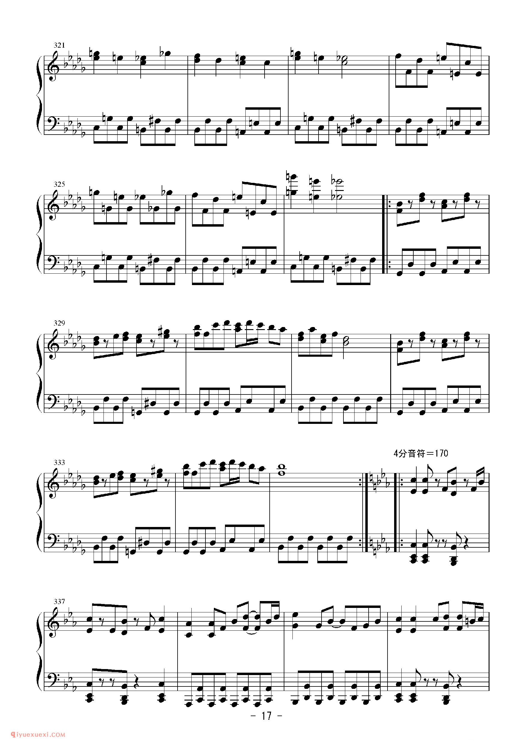技巧: 1.这首作品和前面第八条的训练内容是一样的,都是音阶型的跑动练习,所不同的是这条练习曲以左手训练为主,左手需要注意的技巧要点和右手一样,仍然是换指动作的准确性。(具...