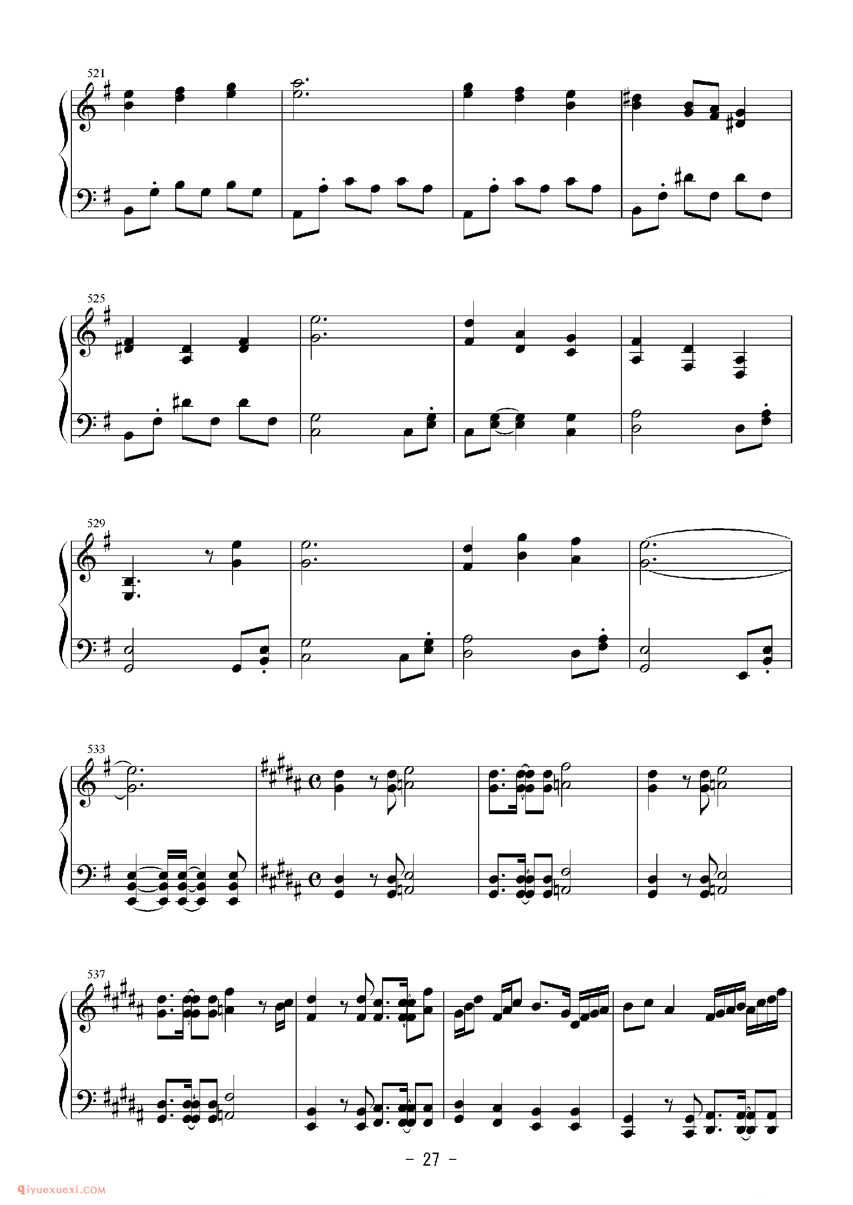 这首乐曲的左手弹奏时,小指既要站稳、保持,大指和三指又可略带轻微地带动手掌的翻动动作, 值得注意的是,19世纪的装饰音往往是在强拍之前弹奏的。因此第11小节的装饰音可从前一小节...
