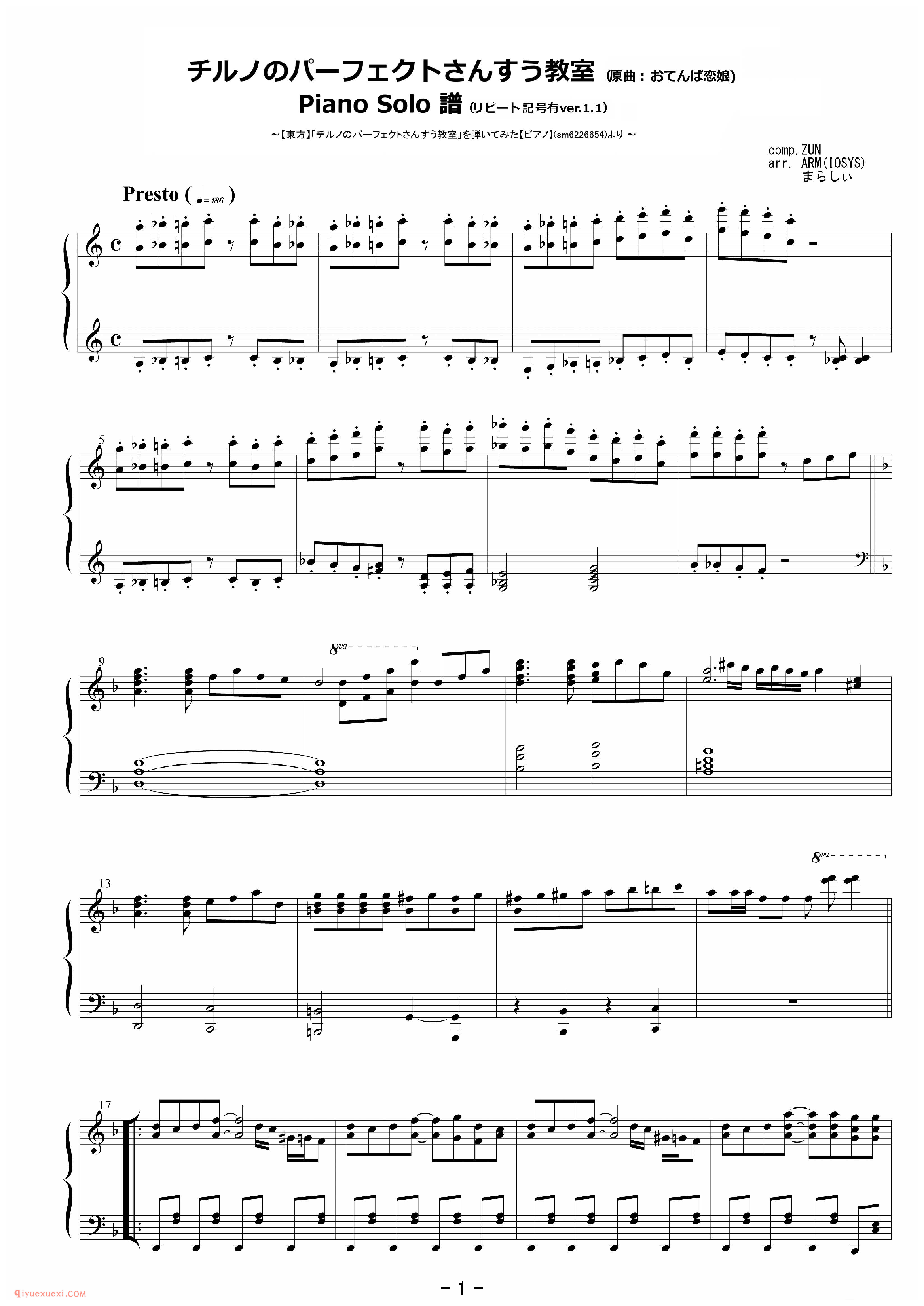 Cirno Repeat Ver1.1_东方(project)钢琴谱高清电子版乐谱歌词图片是器乐学习网于2021年12月05日 11:15:14更新分享的钢琴曲谱;资源收录于钢琴曲谱栏目中;器乐学习网免费分享Cirno Repeat Ver1.1_东方(project)钢琴谱简谱与五线谱歌谱图片,欢迎在线免费下载;器乐学习网无需注册会员,直接免费下载各类乐器学习资源及乐谱。