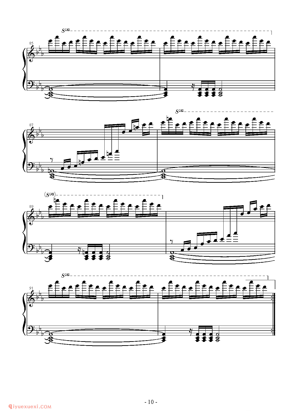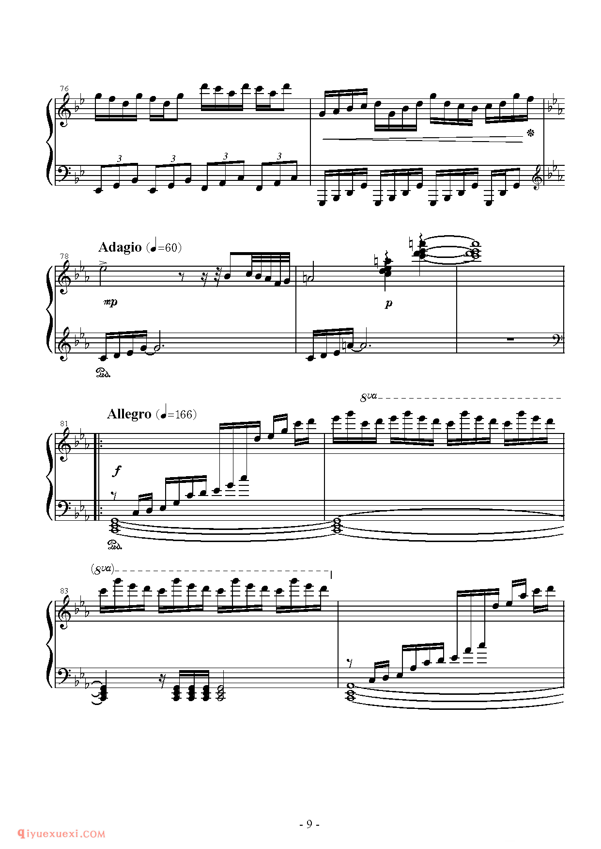 技巧: 1.这首作品和前面第八条的训练内容是一样的,都是音阶型的跑动练习,所不同的是这条练习曲以左手训练为主,左手需要注意的技巧要点和右手一样,仍然是换指动作的准确性。(具...