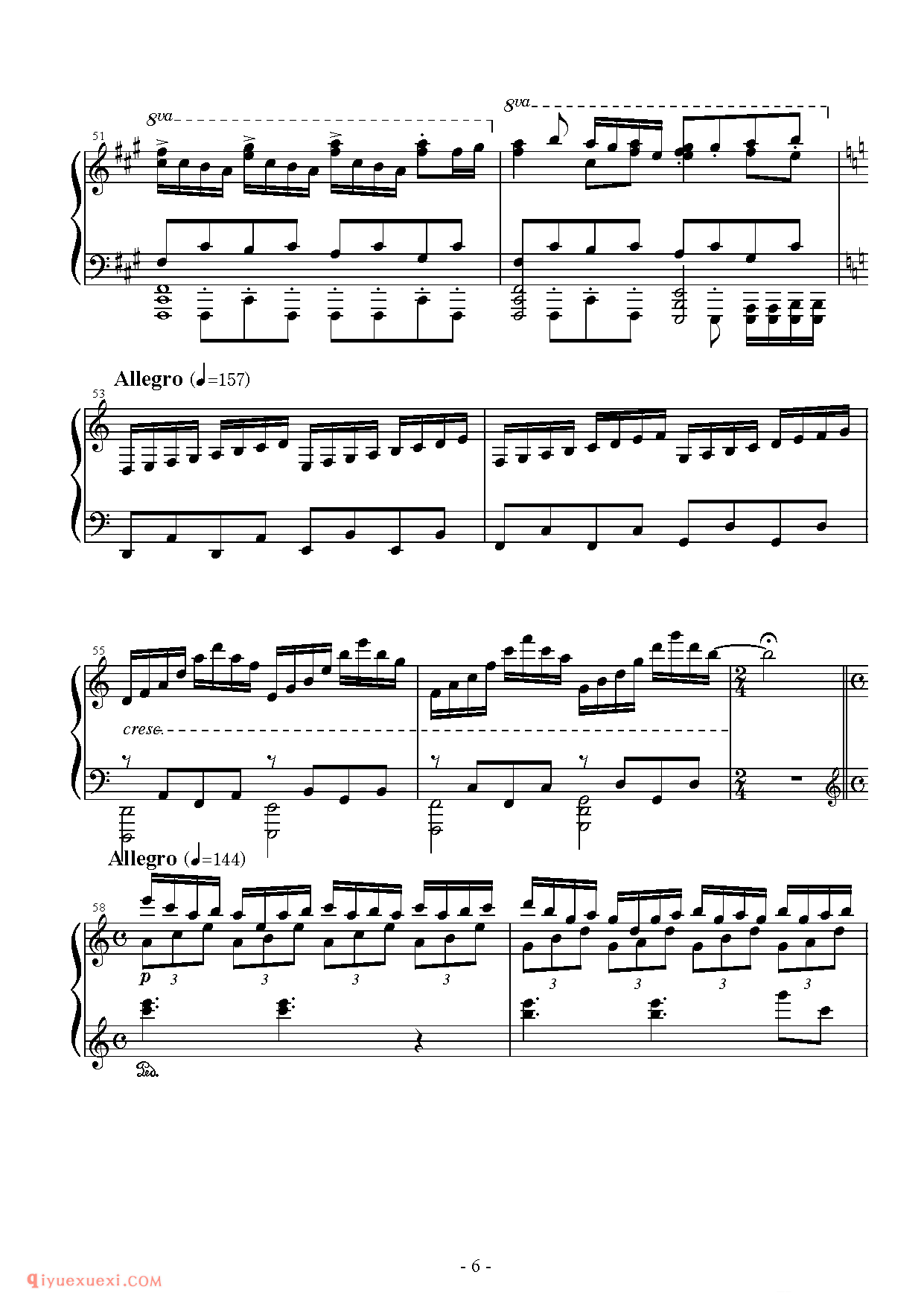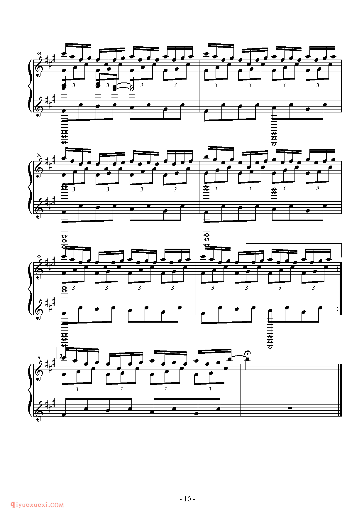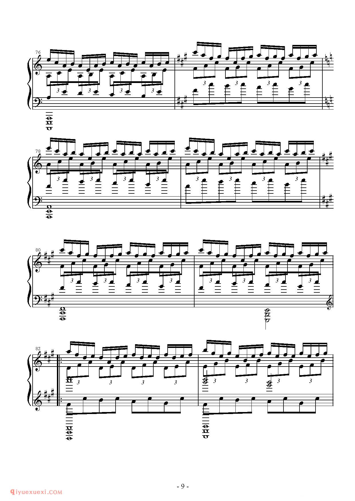 技巧: 1.这首作品和前面第八条的训练内容是一样的,都是音阶型的跑动练习,所不同的是这条练习曲以左手训练为主,左手需要注意的技巧要点和右手一样,仍然是换指动作的准确性。(具...