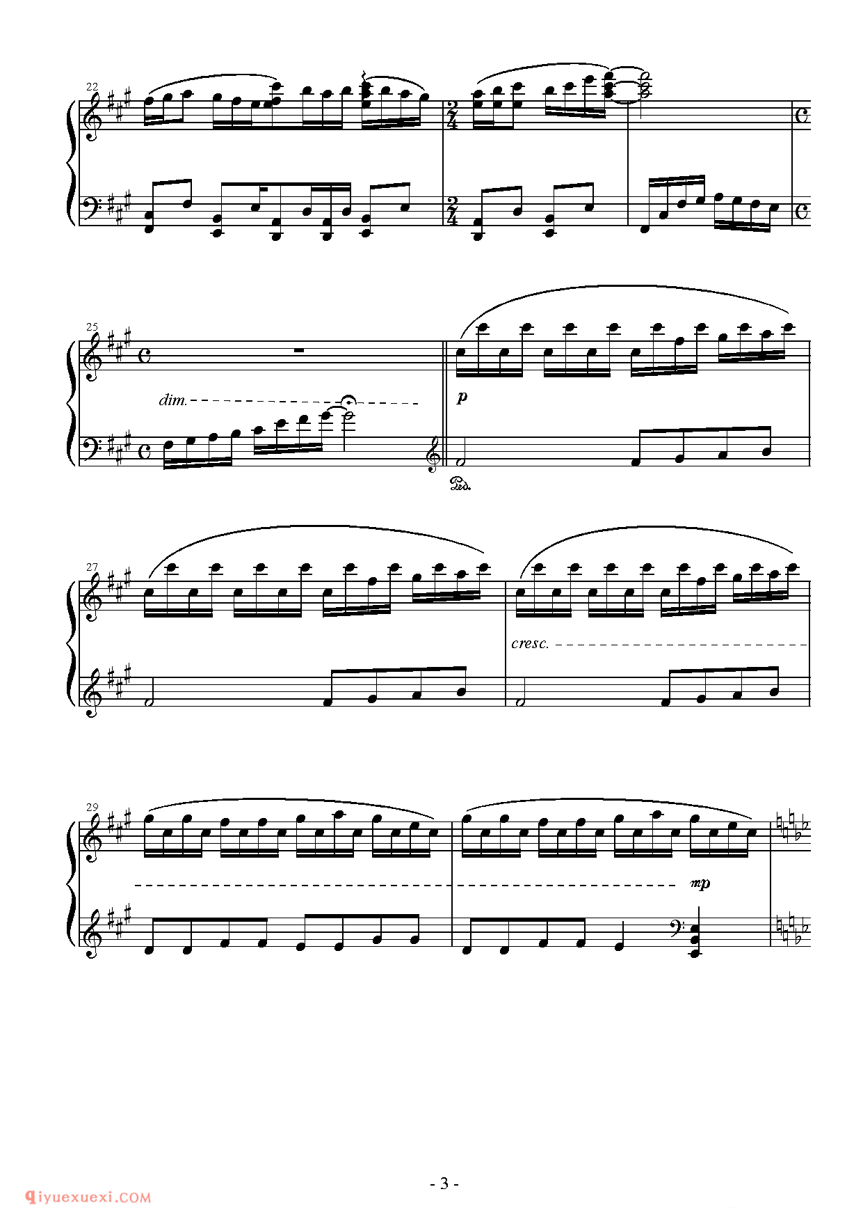 这首乐曲的左手弹奏时,小指既要站稳、保持,大指和三指又可略带轻微地带动手掌的翻动动作, 值得注意的是,19世纪的装饰音往往是在强拍之前弹奏的。因此第11小节的装饰音可从前一小节...