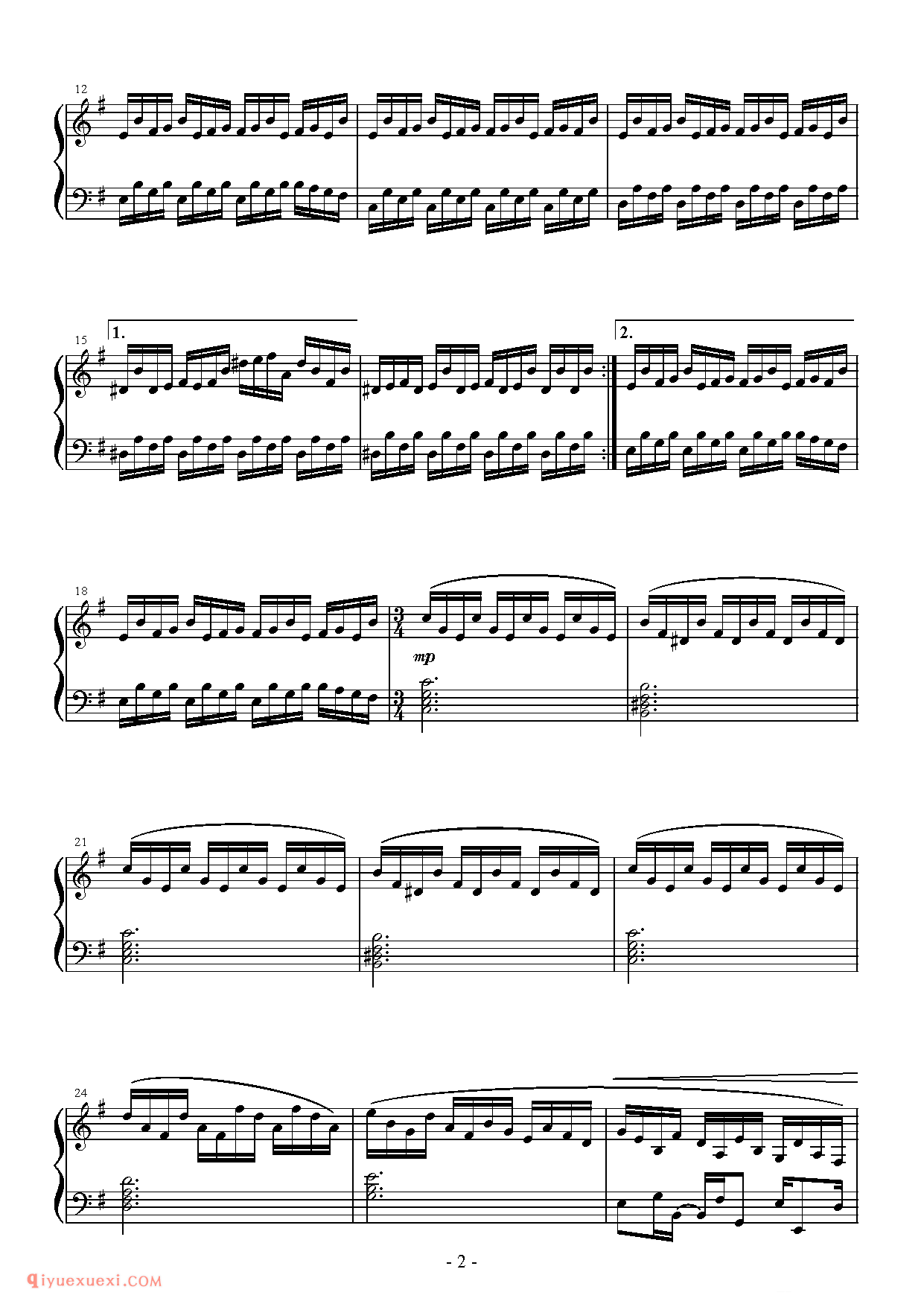 这首乐曲的左手弹奏时,小指既要站稳、保持,大指和三指又可略带轻微地带动手掌的翻动动作, 值得注意的是,19世纪的装饰音往往是在强拍之前弹奏的。因此第11小节的装饰音可从前一小节...