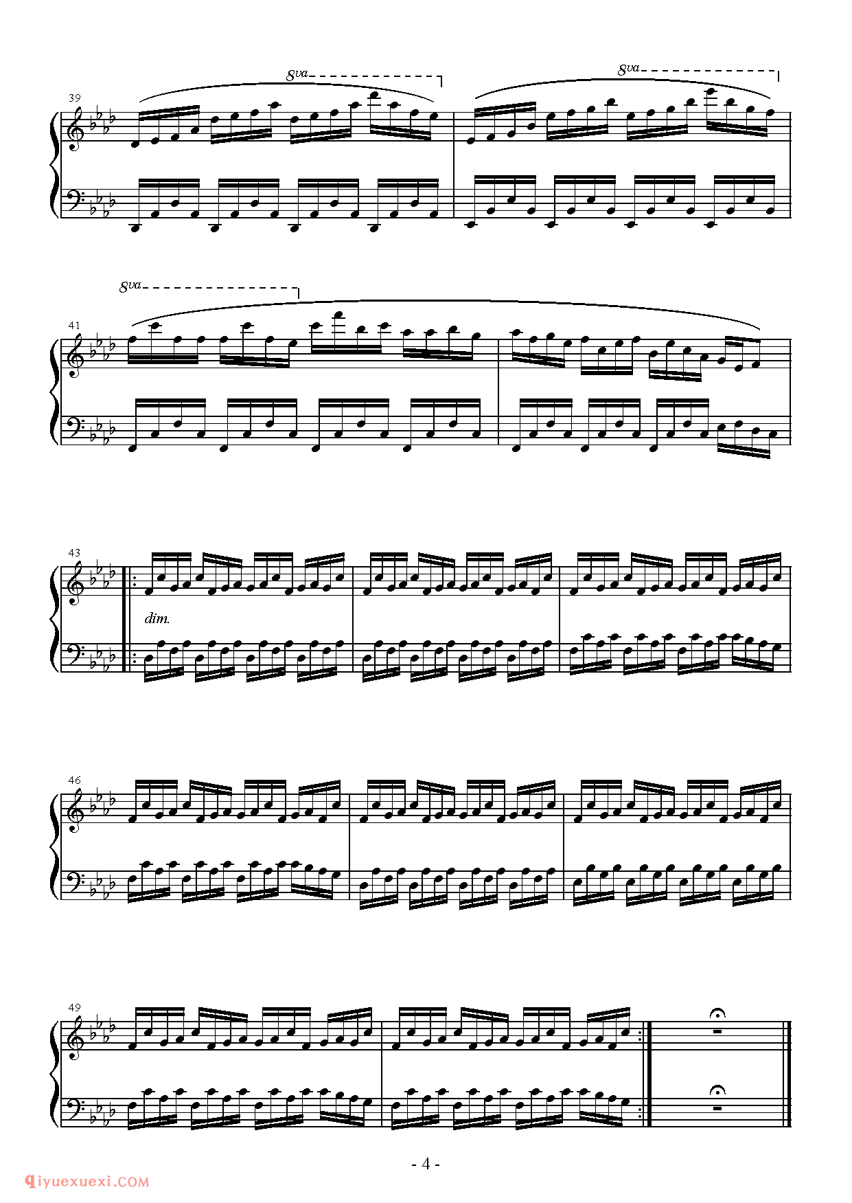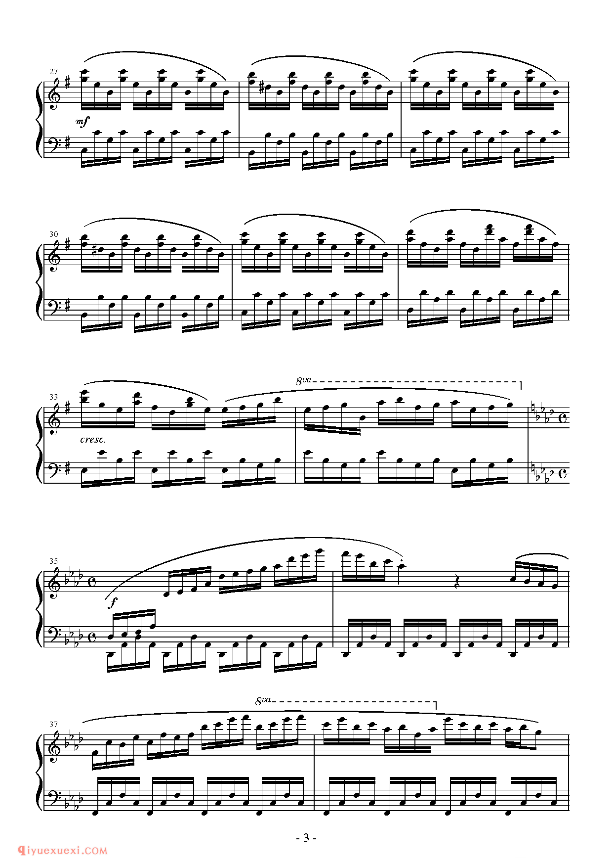 技巧: 1.这首作品和前面第八条的训练内容是一样的,都是音阶型的跑动练习,所不同的是这条练习曲以左手训练为主,左手需要注意的技巧要点和右手一样,仍然是换指动作的准确性。(具...