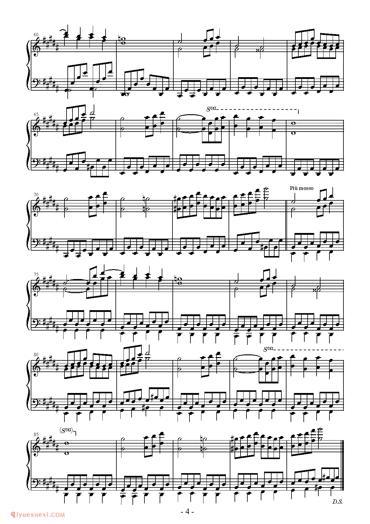 这首乐曲的左手弹奏时,小指既要站稳、保持,大指和三指又可略带轻微地带动手掌的翻动动作, 值得注意的是,19世纪的装饰音往往是在强拍之前弹奏的。因此第11小节的装饰音可从前一小节...
