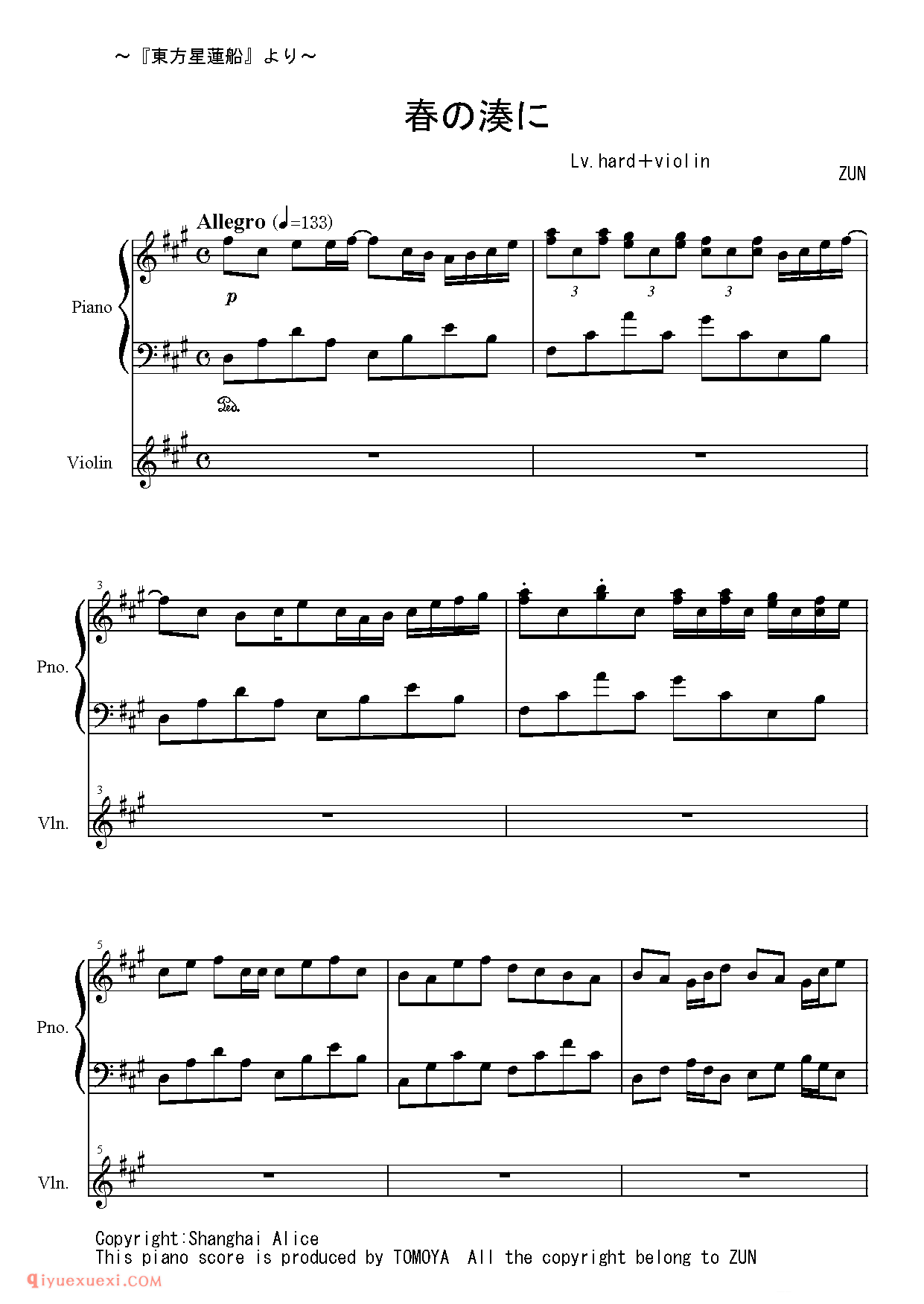 [光と闇の協奏曲][hard][9]piano+violin_春の湊に_東方地霊殿高清电子版乐谱歌词图片是器乐学习网于2021年12月08日 10:41:59更新分享的钢琴曲谱;资源收录于钢琴曲谱栏目中;器乐学习网免费分享[光と闇の協奏曲][hard][9]piano+violin_春の湊に_東方地霊殿简谱与五线谱歌谱图片,欢迎在线免费下载;器乐学习网无需注册会员,直接免费下载各类乐器学习资源及乐谱。