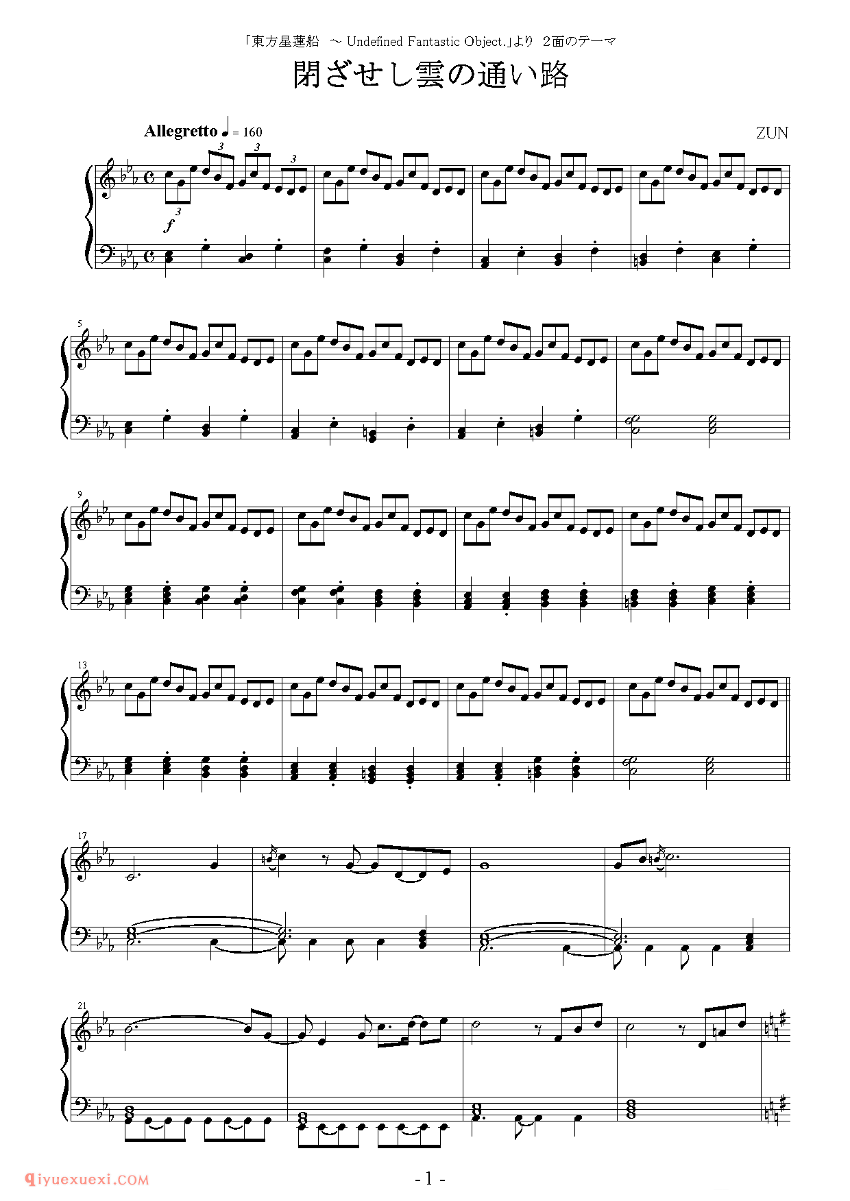 [东方幻音奏][easy][3]_閉ざせし雲の通い路_東方地霊殿高清电子版乐谱歌词图片是器乐学习网于2021年12月08日 10:48:16更新分享的钢琴曲谱;资源收录于钢琴曲谱栏目中;器乐学习网免费分享[东方幻音奏][easy][3]_閉ざせし雲の通い路_東方地霊殿简谱与五线谱歌谱图片,欢迎在线免费下载;器乐学习网无需注册会员,直接免费下载各类乐器学习资源及乐谱。