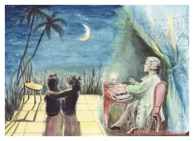 乐圣贝多芬的《月光》钢琴奏鸣曲写于1801年。那一年贝多芬在信中承认他对耳疾的恐忧。他在一封信中还写道:“我现在正过着一种稍微愉快的生活,这种改变是一个爱我,也为我所爱的可爱的,迷人的女孩带来的……不幸的是,她不是我这个阶级的人,而且目前我还不能结婚。”信中所说的“可爱的,迷人的女孩”就是十七岁的朱丽叶塔,她是贝多芬的钢琴学生。她可能还是贝多芬作品第十八号之一弦乐四重奏中慢板乐章灵感的来源。这首奏鸣曲之所以被称为“月光”,是由于德国诗人路德维希.莱尔什塔勃将此曲第一乐章比作“犹如在瑞士琉森湖月光闪烁的湖面上摇荡的小舟一般”而来的。关于此曲还有一个动人的传说,描写当贝多芬给一对盲人兄妹演奏钢琴时,风将蜡烛吹灭了。当时月光静静地洒落在这个贫困的小屋里,洒在钢琴上和三个人的身上。有感此情此景,贝多芬即兴创作了“月光”奏鸣曲。无论如何,“月光”这个名称使这首奏鸣曲成为家喻户晓的名曲。