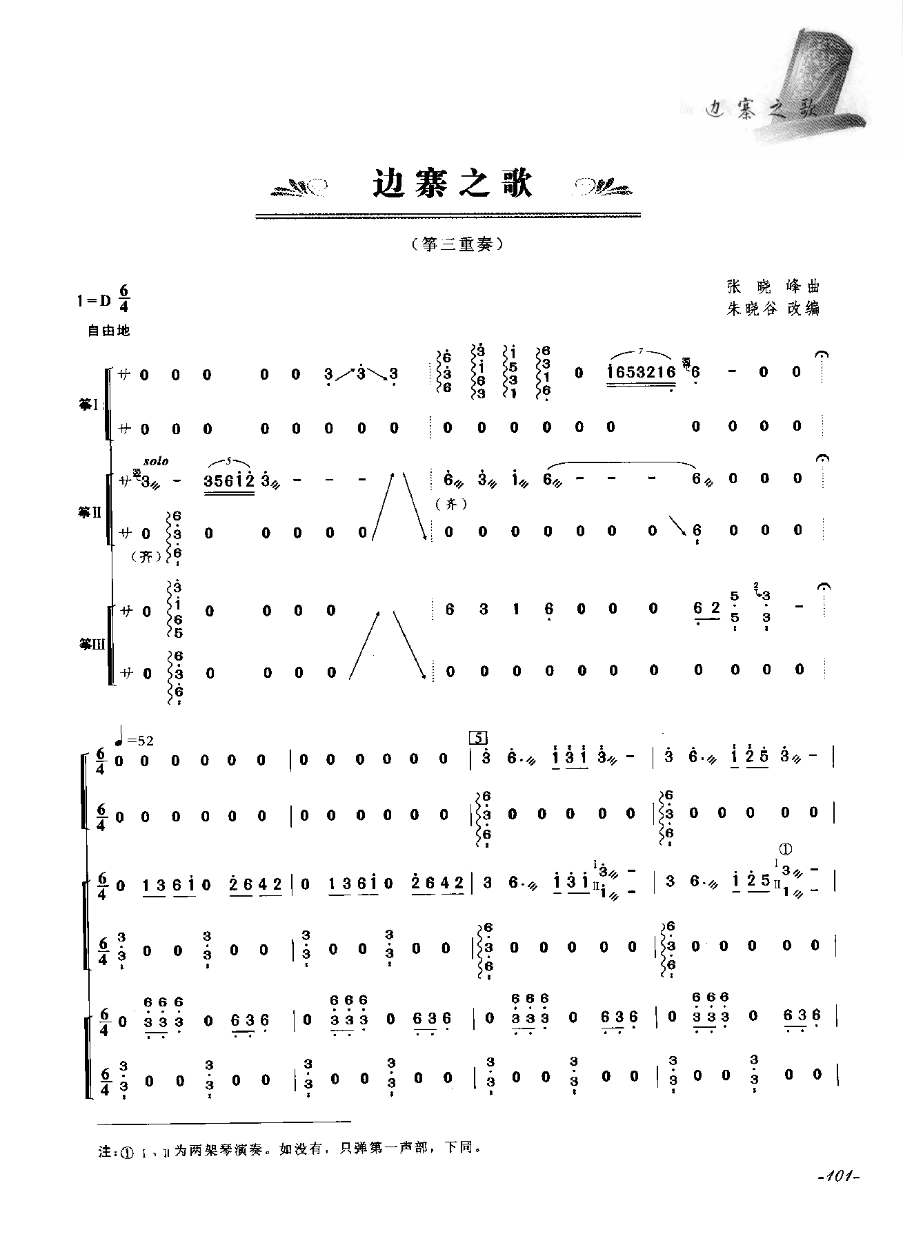 古筝重奏简谱:边寨之歌(筝三重奏 )张晓峰 曲 朱晓谷 改编高清电子版乐谱歌词图片是器乐学习网于2025年02月16日 21:30:02更新分享的古筝曲谱;资源收录于古筝曲谱栏目中;器乐学习网免费分享古筝重奏简谱:边寨之歌(筝三重奏 )张晓峰 曲 朱晓谷 改编简谱与五线谱歌谱图片,欢迎在线免费下载;器乐学习网无需注册会员,直接免费下载各类乐器学习资源及乐谱。