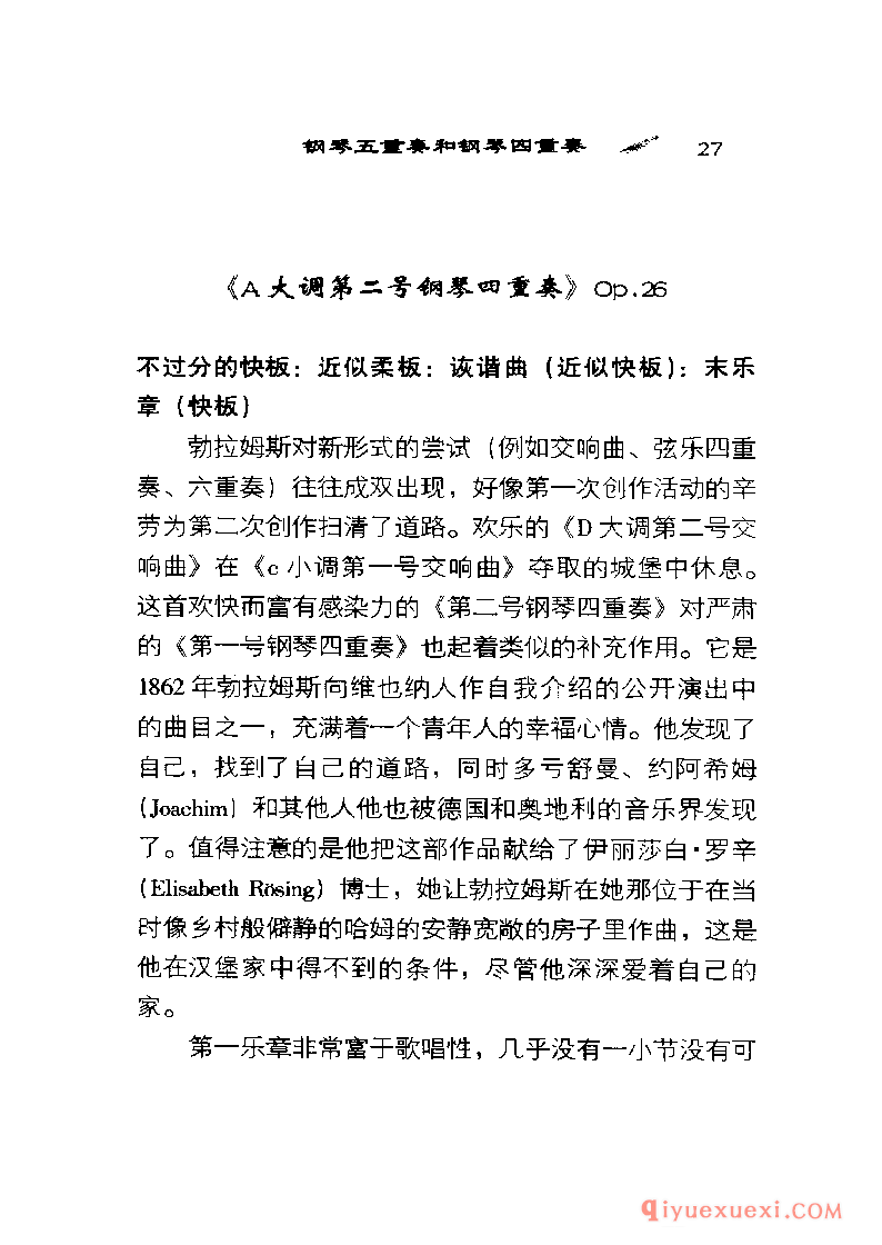 《A大调第二号钢琴四重奏》Op.26