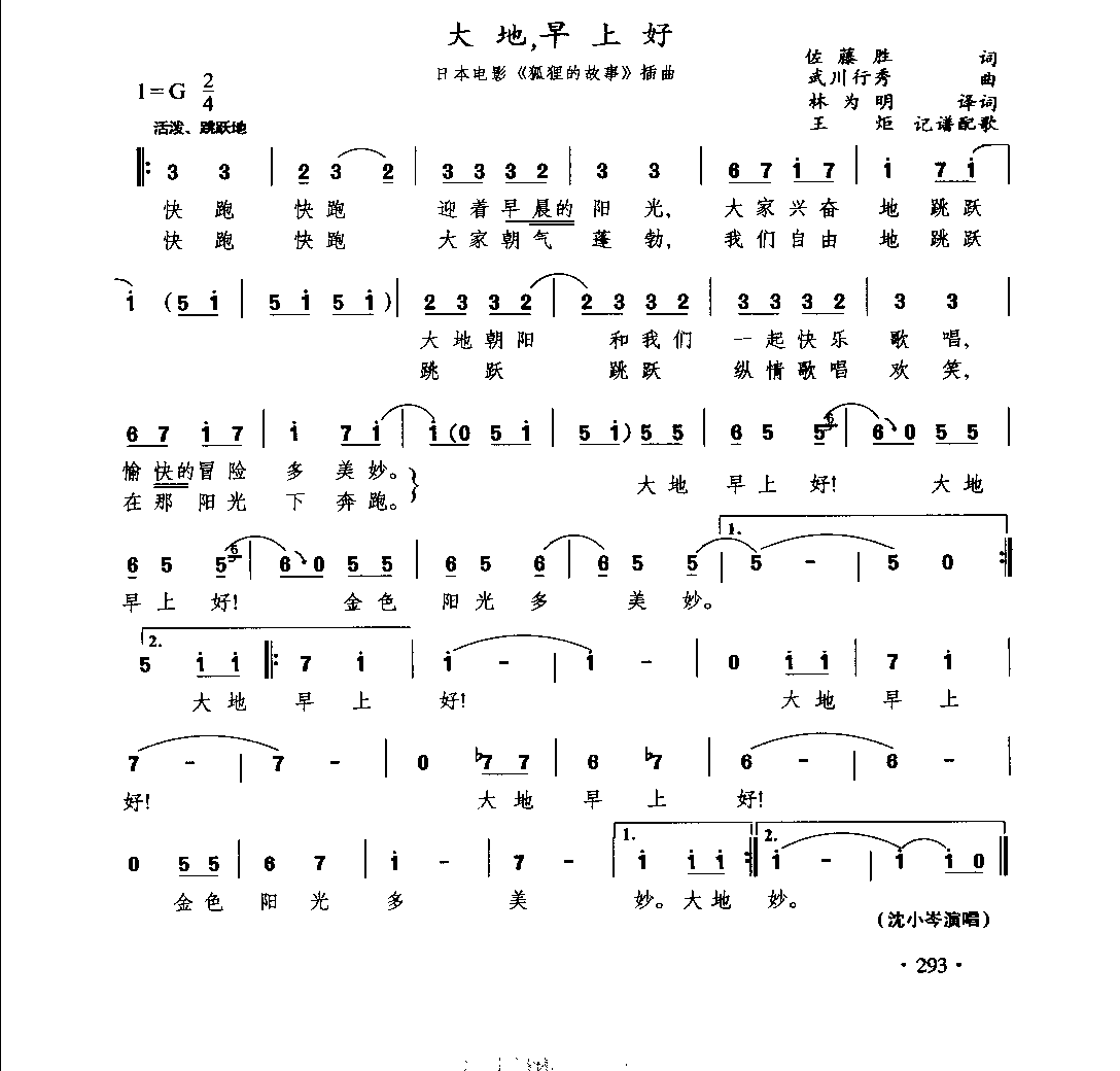 大地,早上好(日本电影《狐狸的故事》插曲 林为明译词 王炬配歌高清简谱歌词是器乐学习网于2025年01月04日 21:21:56更新分享的歌曲简谱;资源收录于歌曲简谱栏目中;器乐学习网免费分享大地,早上好(日本电影《狐狸的故事》插曲 林为明译词 王炬配歌简谱与五线谱歌谱图片,欢迎在线免费下载;器乐学习网无需注册会员,直接免费下载各类乐器学习资源及乐谱。