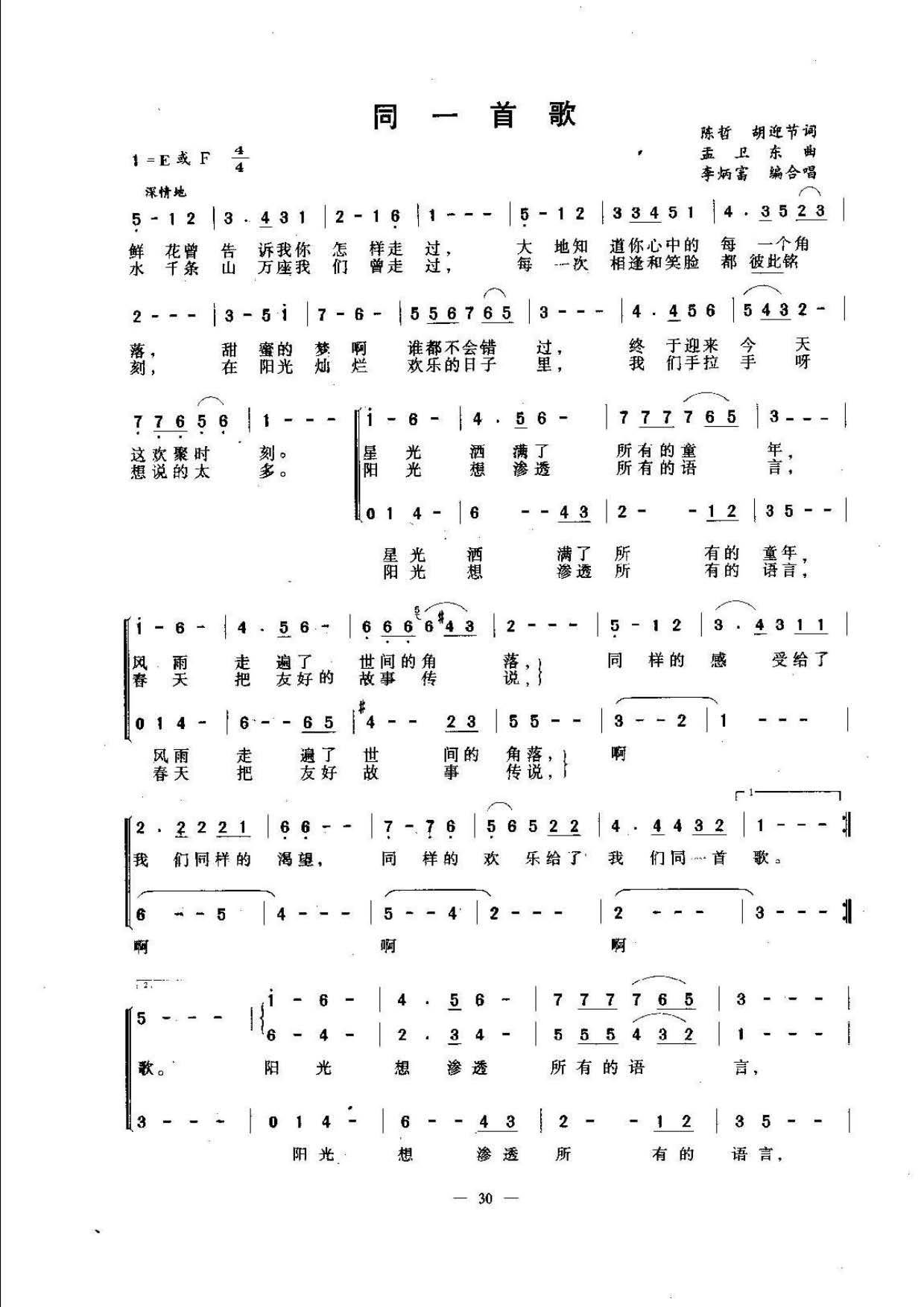 同一首歌 陈哲 胡迎节词 孟卫东曲 李炳富编合唱