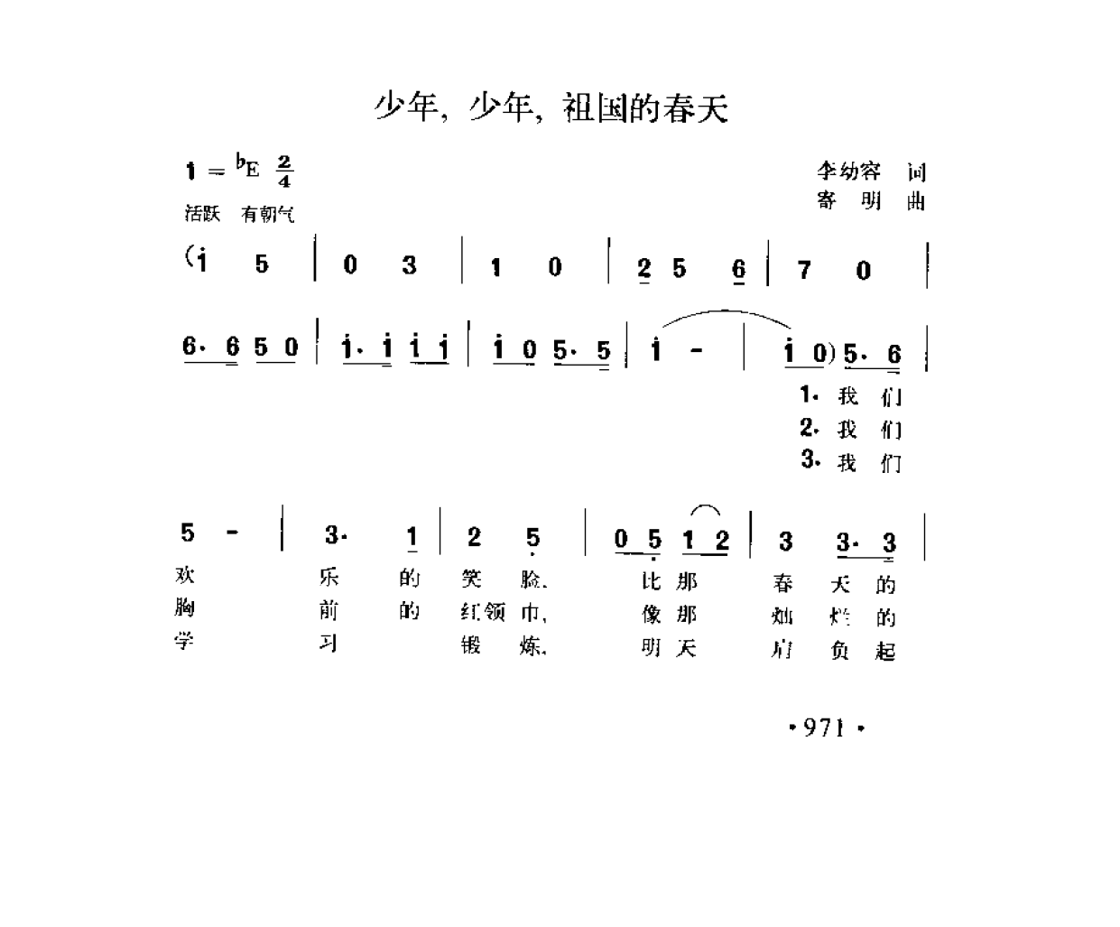 少年,少年,祖国的春天 李幼容词 寄明曲