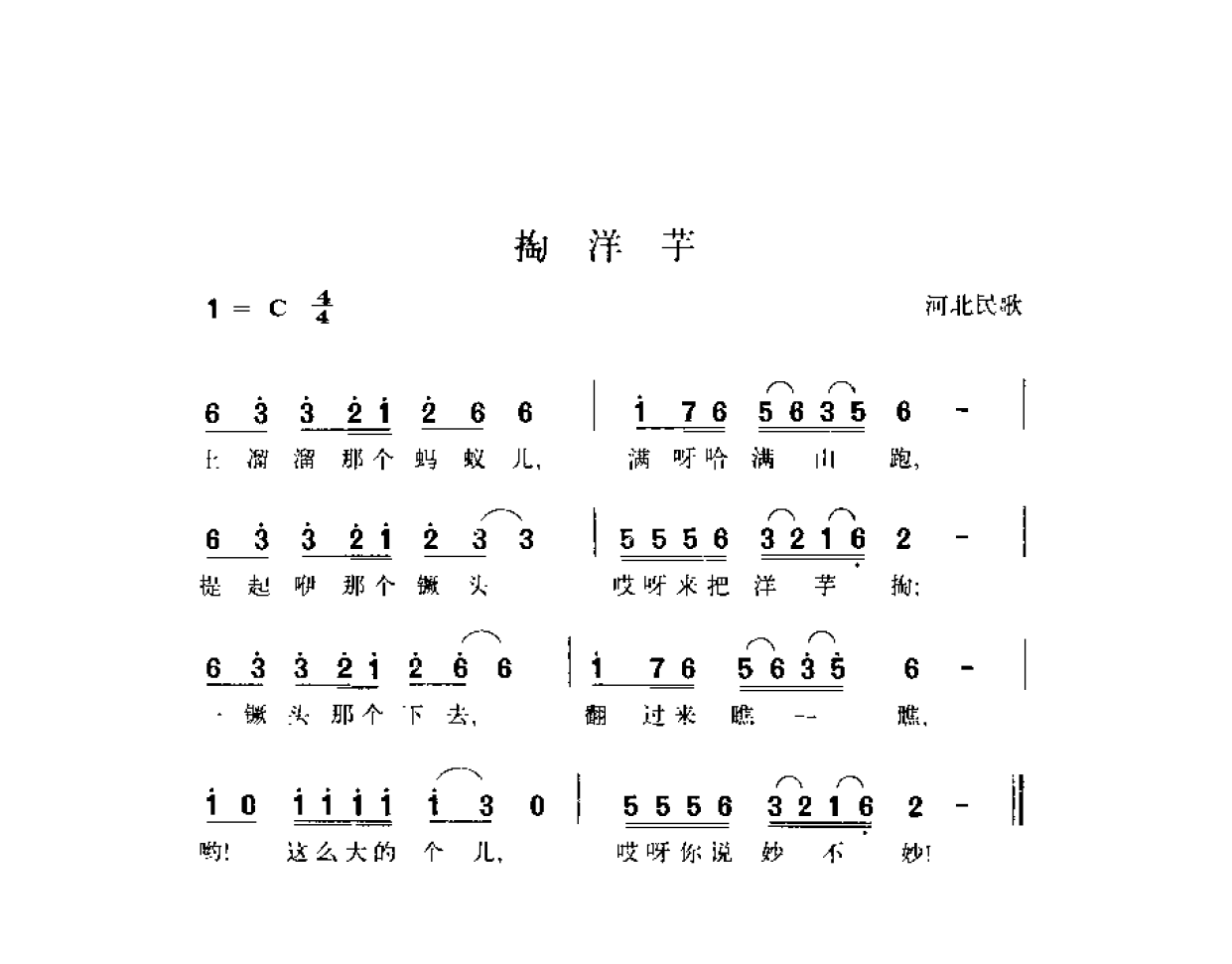 掏洋芋 河北民高清简谱歌词是器乐学习网于2025年01月15日 14:48:37更新分享的民歌曲谱;资源收录于民歌曲谱栏目中;器乐学习网免费分享掏洋芋 河北民简谱与五线谱歌谱图片,欢迎在线免费下载;器乐学习网无需注册会员,直接免费下载各类乐器学习资源及乐谱。