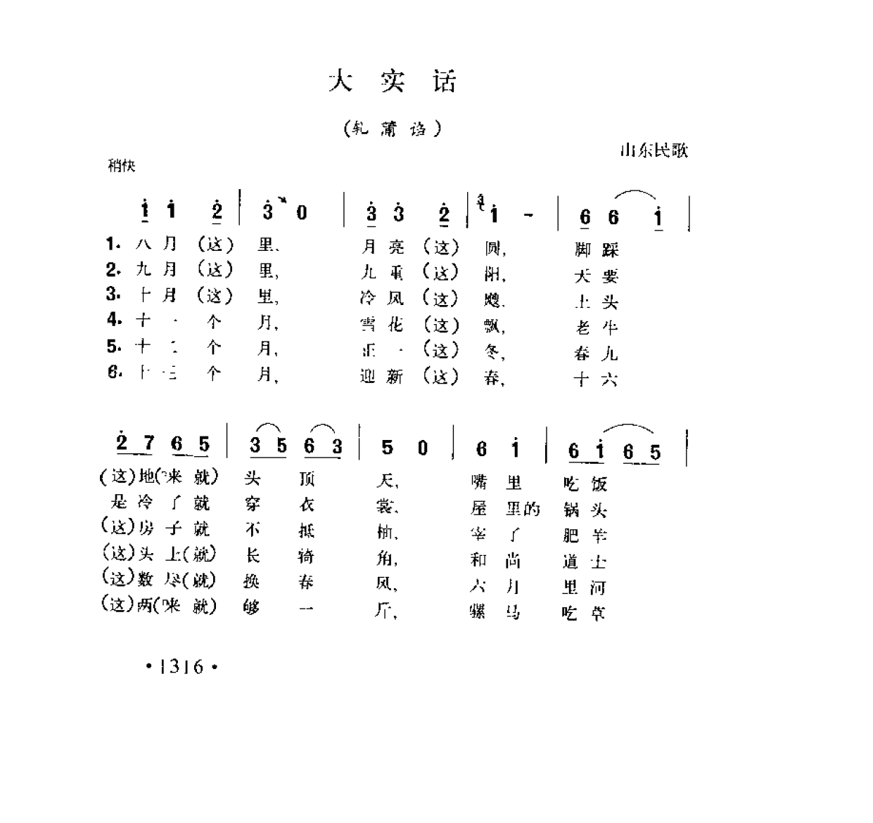 大实话 山东民歌高清简谱歌词是器乐学习网于2025年01月15日 14:50:59更新分享的民歌曲谱;资源收录于民歌曲谱栏目中;器乐学习网免费分享大实话 山东民歌简谱与五线谱歌谱图片,欢迎在线免费下载;器乐学习网无需注册会员,直接免费下载各类乐器学习资源及乐谱。