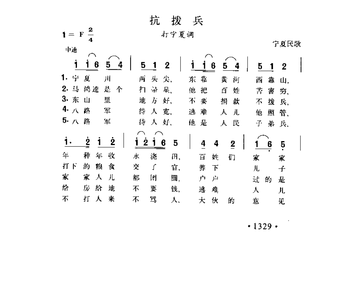 抗拔兵 宁夏民歌 高清简谱歌词是器乐学习网于2025年01月15日 14:55:04更新分享的民歌曲谱;资源收录于民歌曲谱栏目中;器乐学习网免费分享抗拔兵 宁夏民歌 简谱与五线谱歌谱图片,欢迎在线免费下载;器乐学习网无需注册会员,直接免费下载各类乐器学习资源及乐谱。