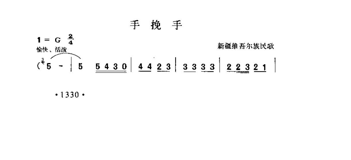 手挽手 新疆维吾尔族民歌高清简谱歌词是器乐学习网于2025年01月15日 15:48:46更新分享的民歌曲谱;资源收录于民歌曲谱栏目中;器乐学习网免费分享手挽手 新疆维吾尔族民歌简谱与五线谱歌谱图片,欢迎在线免费下载;器乐学习网无需注册会员,直接免费下载各类乐器学习资源及乐谱。