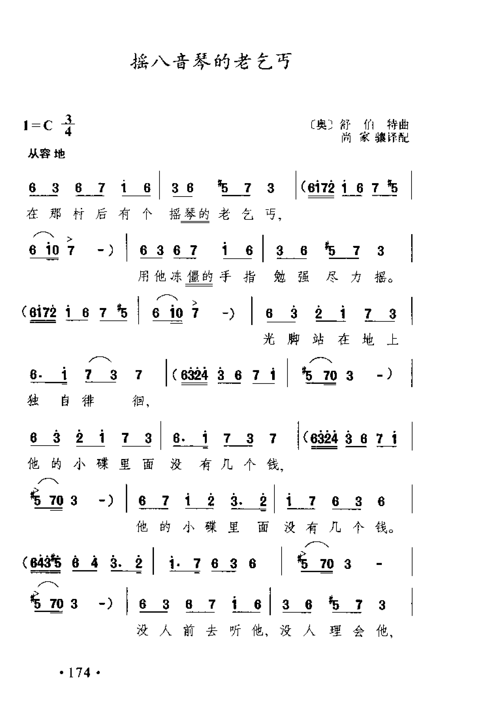 外国古典歌曲简谱:摇八音琴的者气(奥)舒伯特曲