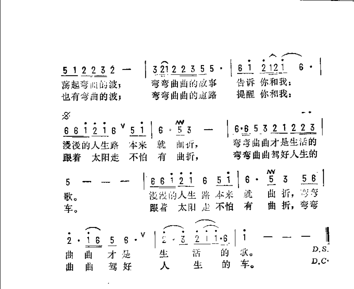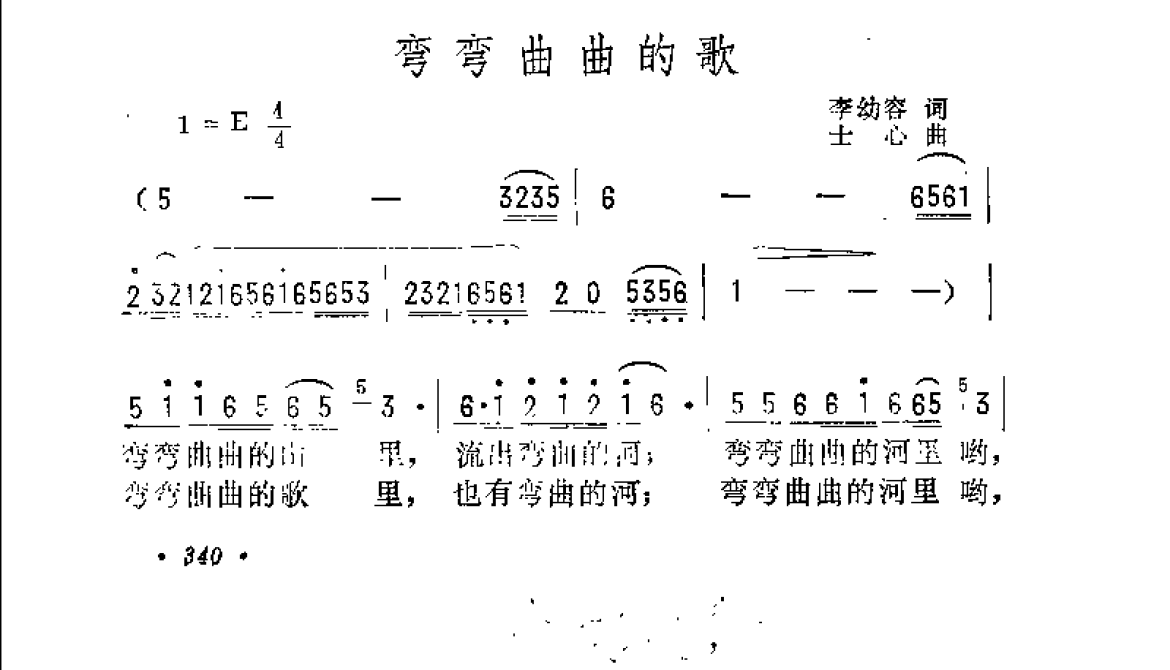 中国通俗歌曲简谱:弯弯曲曲的歌 李幼容词 士心曲