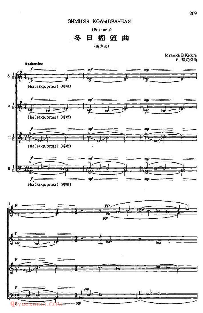 俄罗斯 | 冬日摇篮曲 合唱练声曲 | 五线谱高清简谱歌词是器乐学习网于2021年05月20日 07:52:17更新分享的合唱歌谱;资源收录于合唱歌谱栏目中;器乐学习网免费分享俄罗斯 | 冬日摇篮曲 合唱练声曲 | 五线谱简谱与五线谱歌谱图片,欢迎在线免费下载;器乐学习网无需注册会员,直接免费下载各类乐器学习资源及乐谱。