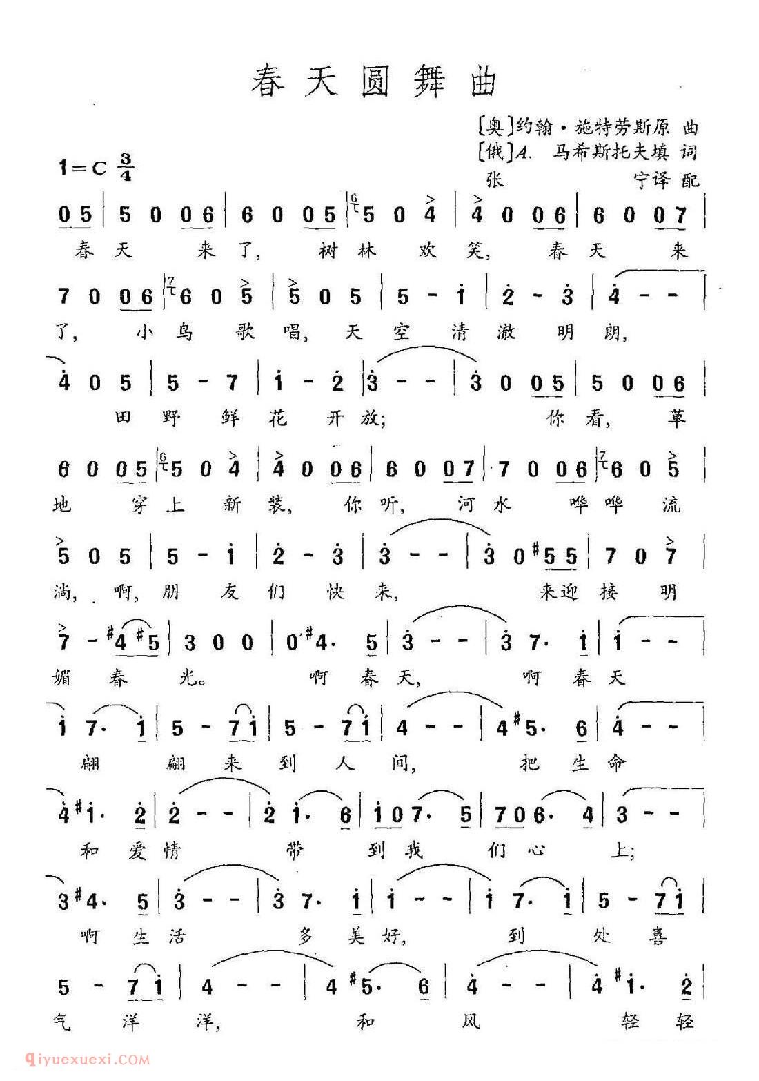 奥地利 俄罗斯 | 春天圆舞曲 张宁译配 | 简谱高清简谱歌词是器乐学习网于2021年06月07日 09:40:44更新分享的外国歌谱;资源收录于外国歌谱栏目中;器乐学习网免费分享奥地利 俄罗斯 | 春天圆舞曲 张宁译配 | 简谱简谱与五线谱歌谱图片,欢迎在线免费下载;器乐学习网无需注册会员,直接免费下载各类乐器学习资源及乐谱。
