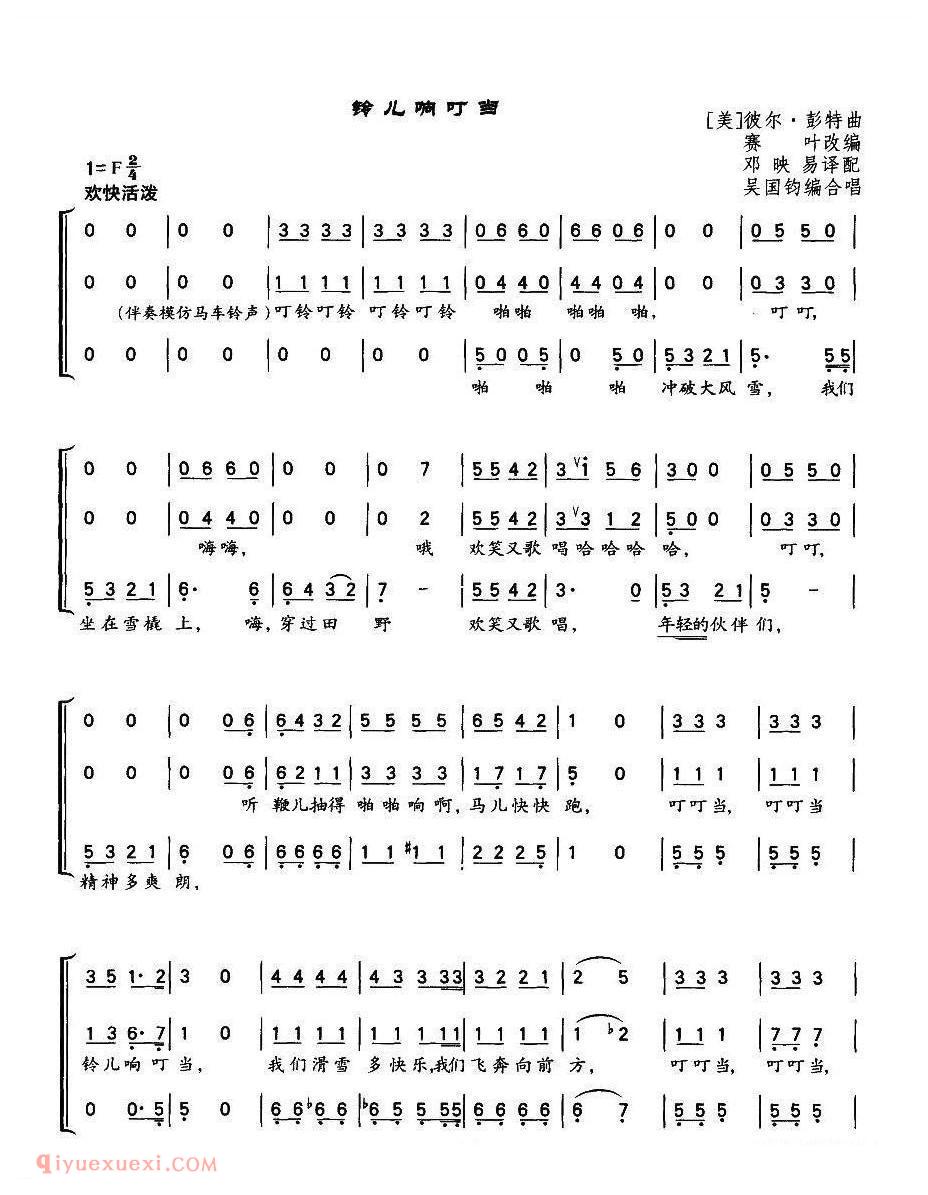 铃儿响叮当/三声部、吴国钧编合唱版 | 美国高清简谱歌词是器乐学习网于2021年07月19日 18:32:23更新分享的合唱歌谱;资源收录于合唱歌谱栏目中;器乐学习网免费分享铃儿响叮当/三声部、吴国钧编合唱版 | 美国简谱与五线谱歌谱图片,欢迎在线免费下载;器乐学习网无需注册会员,直接免费下载各类乐器学习资源及乐谱。