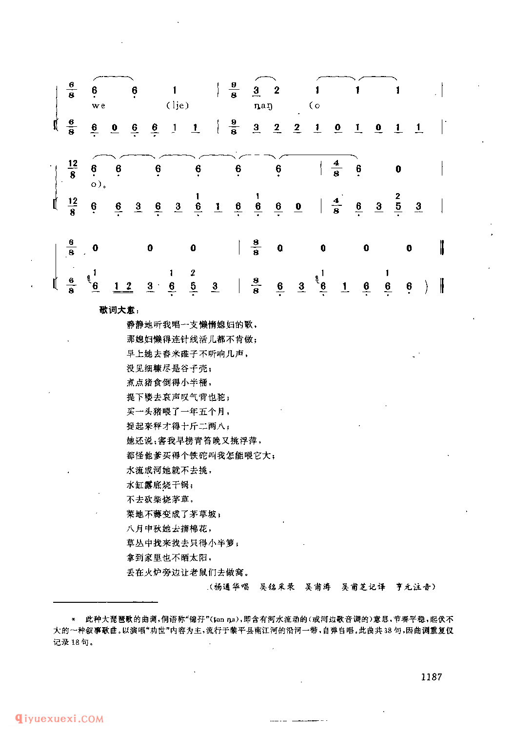 懒惰的媳妇 黎平县·下地坪寨_嘎贝巴_贵州民间歌曲简谱高清简谱歌词是器乐学习网于2022年08月14日 23:52:23更新分享的民歌曲谱;资源收录于民歌曲谱栏目中;器乐学习网免费分享懒惰的媳妇 黎平县·下地坪寨_嘎贝巴_贵州民间歌曲简谱简谱与五线谱歌谱图片,欢迎在线免费下载;器乐学习网无需注册会员,直接免费下载各类乐器学习资源及乐谱。